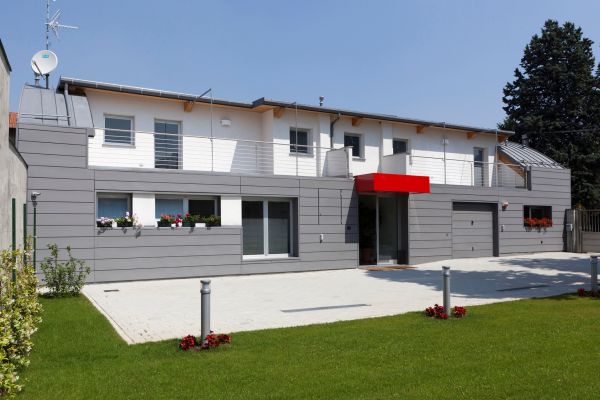 La riqualificazione delle aree industriali dismesse è una delle grandi opportunità per il recupero del patrimonio edilizio esistente e la sua valorizzazione in termini architettonici. E’ il caso del capannone all’interno dell’area fra via Marelli e via Goldoni a Cerro Maggiore, nel milanese, che è stato trasformato dal punto di vista estetico e funzionale nella sede di una nuova attività produttiva di ricerca, sviluppo e assistenza in campo informatico (hardware e software), su progetto dell’architetto Fabrizio Monza. Facciata principale degli ex edifici industriali a Cerro Maggiore L’edificio oggetto di demolizione-ristrutturazione risale agli anni ’50 ed è costituito da un parallelepipedo a base leggermente trapezoidale di circa 21,5 metri di lunghezza per 12 metri di profondità sormontato da una volta a botte. In base all’analisi e alle verifiche eseguite che ne hanno evidenziato l’avanzato stato di degrado, si è proceduto alla sostituzione quasi integrale della struttura del corpo principale mantenendone il sedime originario e riducendone in parte l’impatto volumetrico, per consentire una nuova percezione degli spazi e un miglioramento complessivo delle relazioni visuali pubbliche.La relazione diretta tra la strada e l’edificio è stata rinnovata attraverso la realizzazione di una quinta geometrica e marcata che sottolinea il carattere orizzontale dell’edificio svuotandolo in parte della “corposità” originale attraverso l’arretramento del piano primo e l’uso delle parti vetrate (fronte di via Goldoni). Operazione enfatizzata dall’eliminazione dei volumi esterni spostando al piano terra del capannone principale tutta la superficie esistente a destinazione produttiva, che ha consentito di sgombrare il cortile, realizzare posti auto e aumentare lo spazio verde alberato. Vista prospettica degli edifici a Cerro Maggiore Dal punto di vista distributivo interno è stato inserito un nuovo piano (dove è stata trasferita l’unità residenziale esistente) sfruttando la grande altezza presente con la realizzazione di un apposito solaio ed è stato recuperato il sottotetto a fini abitativi, al quale è asservito il box al piano terra. Per quanto riguarda invece la conformazione planivolumetrica e la composizione architettonica e materica appare netta la separazione fra il piano terra e il piano primo. L’edificio si presenta composto al piano terra da un parallelepipedo rivestito in doghe di zinco titanio QUARTZ-ZINC®, su cui s’innesta il volume arretrato del piano primo con rivestimento ad intonaco. Su tutto il “segno” della copertura a botte dell’ex capannone industriale, attualmente rivestito in zinco titanio QUARTZ-ZINC® con la tecnica della doppia aggraffatura. Rivestimento in zinco titanio di VM ZINC “La decisione di utilizzare un materiale come lo zinco titanio QUARTZ-ZINC® – come sottolinea l’architetto Fabrizio Monza – è nata subito, avendo deciso che era necessario differenziare il nuovo organismo edilizio dal contesto urbano nonché rinnovare completamente la percezione consolidata dell’edificio preesistente. Nel dettaglio si è scelto di esaltare la forma allungata dell’edificio mediante doghe orizzontali con fuga accentuata che trovano riscontro formale e linguistico nella copertura anch’essa caratterizzata da una modularità (ma in senso verticale).” Consiglia questo progetto ai tuoi amici Commenta questo progetto