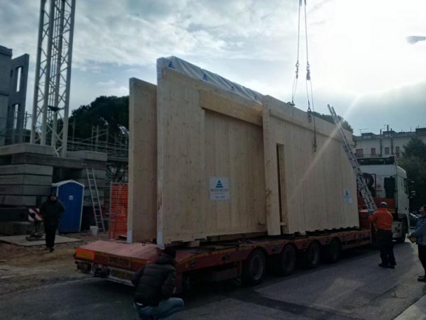 Residence BIO and SEA a Jesolo: 11 appartamenti pronti in 30 giorni, tutti con struttura in legno. Mia Re Srl di Treviso, committente del progetto e particolarmente sensibile alle tematiche della bioedilizia e della bioarchitettura, ha scelto una palazzina in legno, realizzata seguendo le moderne tecniche di costruzione. Un edificio di ben 6 piani fuori terra. Cade un tabù: le abitazioni pluripiano possono essere in legno. Questo materiale è, infatti, in grado di rispondere positivamente alle prestazioni richieste da un edificio a più piani, grazie al buon rapporto peso/prestazioni e a un ottimo comportamento al fuoco. Una palazzina sicura dal punto di vista sismico: per il suo carattere elastico e per le sue proprietà meccaniche, il legno reagisce in modo adeguato all’azione di un terremoto poiché l’energia indotta dal sisma è dissipata dalla struttura lignea, soprattutto attraverso la deformabilità delle giunzioni tra i vari elementi, che riesce a rispondere in modo efficace alle sollecitazioni derivanti dalle scosse sismiche, senza subire danni importanti. Inoltre, la resistenza all’azione del sisma e a quella del vento, è assicurata dal nucleo centrale dell’edificio, costituito dal vano scala, prefabbricato e realizzato in calcestruzzo armato, da un’altra azienda del Gruppo, la Camuna Prefabbricati Srl. Oltre ad ottemperare ai principi di sostenibilità ed efficienza energetica, il legno ha giovato al progetto anche da un punto di vista costruttivo: architettonicamente pulito e dimensionalmente equilibrato, l’edifico si compone di 11 appartamenti trilocali, tutti realizzati con solai Prepanel® (misti legno-calcestruzzo) e pannelli prefabbricati in X-Lam. L’utilizzo del solaio Prepanel®, in sostituzione del solaio in legno, accoppiato alle pareti in X-Lam, permette un’ottimizzazione dell’uso dei materiali, aumentando le prestazioni statiche del solaio stesso, con un consumo di legno pari a circa la metà. Con questa soluzione Wood Beton ha realizzato importanti lavori pubblici, come ad esempio il Polo Scolastico di Aulla (MS), con migliaia di metri quadri di solai e pareti prodotti. Dunque, l’utilizzo di sistemi costruttivi così tecnologicamente all’avanguardia, ha permesso di minimizzare l'uso dei materiali, mantenendo elevatissimo il livello qualitativo, oltre a ridurre i tempi di realizzazione dell'edificio e, quindi, dei costi di costruzione. Ubicato in una delle location più interessanti di Jesolo, con una vista a 360° che spazia dalla laguna al mare, il residence Bio and Sea si compone di abitazioni che si adattano sia alla residenza stabile che a quella turistica: ogni unità abitativa, di circa 80mq, dispone di zona soggiorno, angolo cottura, due camere da letto, un bagno, un ripostiglio e due balconi. Una particolarità dell’edificio è la forma trapezoidale della facciata sud, dove i poggioli variano dimensione ad ogni piano e presentano sbalzi fino a 3,5 metri, contemporaneamente in entrambe le direzioni: anche in questo caso Wood Beton ha saputo proporre una soluzione strutturale prefabbricata, che ha consentito di soddisfare brillantemente le necessità architettoniche. L’intero intervento immobiliare è costato circa 1.800.000,00 euro. Consiglia questa notizia ai tuoi amici Commenta questa notizia
