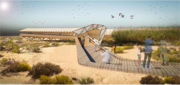 The Abu Dhabi Flamingo Observation Tower è il concorso pensato per la progettazione di un punto di osservazione dei fenicotteri nella riserva di Al Wathba a 40 chilometri a sud-est di Abu Dhabi, molto nota per la frequenza di questi uccelli soprattutto nel periodo invernale. Tre progetti molto diversi tra loro per design e materiali ma tutti con un impatto limitato sull’ambiente. a cura di Tommaso Tautonico La giuria ha decretato i vincitori del concorso – lanciato da Bee breeders, uno dei principali organizzatori di concorsi di architettura su piccola scala a livello internazionale – che richiedeva ai partecipanti di proporre progetti che comprendessero sia la piattaforma di osservazione dei fenicotteri che il collegamento con il lungomare. I requisiti del concorso erano: estensione di 400 m², altezza di 12 m, resistenza, accessibilità e facile mantenimento, il tutto con un costo massimo di 200.000 dollari. Il progetto vincitore diventerà il punto di riferimento per le zone umide presenti nella riserva, completando la rete di sentieri e di nascondigli già presenti. I primi tre premi sono stati assegnati a progetti molto diversi tra loro, sia per stili che per caratteristiche strutturali. The Abu Dhabi Flamingo Observation Tower: i vincitori Al primo posto del concorso, il progetto “Flamingo Dreams” degli architetti australiani Bryan Fan e Shelley XU. Una punto di osservazione insolito, una struttura che richiama la forma di un nido di uccelli con fili di erba intrecciati. Gli architetti hanno proposto una passerella che offre una passeggiata esperienziale: una struttura in acciaio fissata su un groviglio di sottili elementi verticali, permette ai visitatori di rimanere nascosti e non esser visti dai fenicotteri, ma allo stesso tempo permette di osservarli attraverso le piccole aperture esistenti nella copertura esterna. Il nido invece è composto da una griglia in metallo con una balaustra ricoperta da un intreccio di foglie di palma. Il secondo premio è stato assegnato a “Birdwalk”, una passerella allungata, coperta e sollevata in grado di fornire punti panoramici multipli, affacciati su piccoli laghi presenti nella riserva naturale. Progettato da un team britannico composto da Natalia Wrzask, Rolando Rodriguez Leal, José Luis Mulás e Paola Barrenechea, il progetto è stato pensato per impattare al minimo sul paesaggio. Per questo la passerella è composta da un sistema modulare di basamento in cemento, sormontato da pedane in bambù e rovere, ricoperti da un tessuto semi-trasparente che segue la topografia del paesaggio. Completano il progetto numerosi posti a sedere per i visitatori della riserva. Al terzo posto del concorso “The Cube”, la struttura pixelata del team olandese composto da Rafail Gkaidatzis e Panagiotis Disinfected, che ha impressionato la giuria per la sua capacità di produrre un numero di spazi di visualizzazione unici utilizzando un semplice modulo. L’intera struttura infatti è composta da un cubo formato da 12 elementi lineari in legno fissati agli angoli. Un reticolo intrecciato che ricorda una gabbia per uccelli e che offre numerosi punti di osservazione dell’ambiente circostante da diverse prospettive. img by beebreeders Consiglia questa notizia ai tuoi amici Commenta questa notizia