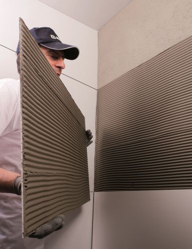Sempre più utilizzate, le piastrelle ceramiche di grande formato hanno bisogno di prodotti ad alte prestazioni per una posa accurata. Gli adesivi cementizi Mapei rispondono alle esigenze di committenti, progettisti e posatori grazie alle eccellenti performance tecniche. Indice degli argomenti: Cosa si intende per piastrelle grandi formati? Le soluzioni Mapei Gli adesivi adatti per grandi formati e materiali lapidei La norma UNI 11493 Da tempo il settore ceramico è in grado di proporre al mercato piastrelle di grandi dimensioni e di ridotto spessore. Sono i cosiddetti “grandi formati“, prodotti che, per dimensioni e caratteristiche, suscitano l’interesse di committenti e di architetti sempre più orientati verso questo trend. Coprono infatti grandi superfici, riducono le interruzioni tecniche del rivestimento (fughe e giunti) e accelerano i tempi di posa. Ma cosa si intende per piastrelle grandi formati? La norma Uni 11493-1 del 2016 (che ha modificato la 11493 del giugno del 2013 che contiene le linee guida per la posa di ceramica “Piastrellature ceramiche a pavimento e a parete. Istruzioni per la progettazione, l’installazione e la manutenzione”) definisce di grande formato le piastrelle con un lato di lunghezza superiore a 60 centimetri (com’è noto, sono presenti sul mercato piastrelle che superano i 3 metri di lunghezza e possiedono spessori ridottissimi: da 3 a 6 millimetri; nda). Nella posa delle piastrelle di grande formato, per impedire la flessione delle lastre, occorre prestare molta attenzione ad alcune operazioni, come la loro movimentazione in cantiere, che avviene mediante carrelli, ventose o strutture fisse. Altro aspetto cruciale per una corretta posa in opera riguarda la cura del sottofondo: queste lastre, proprio in relazione al loro ridotto spessore, esigono un sottofondo perfettamente planare e privo di irregolarità. Inoltre, serve prestare attenzione alla stesura dell’adesivo, che deve avvenire con una doppia spalmatura, sia sul sottofondo sia sul retro della lastra, ciò per evitare la presenza di vuoti al di sotto della superficie del materiale. L’adesivo deve essere steso con spatole adeguate, tale da trasferire la giusta quantità. Una volta posata, la lastra ceramica va compressa manualmente o con una piastra meccanica vibrante per assicurare il massimo contatto lastra-adesivo-supporto. Vanno sempre realizzate, nonostante si sia in presenza di lastre di grandi dimensioni, le fughe tra un elemento e l’altro, come peraltro prescrive la normativa. Le fughe vanno poi riempite con materiale da scegliersi in funzione delle caratteristiche del rivestimento. Per la posa dei grandi formati, come stabilisce la norma 11493 del 2013 e le sue successive modifiche (la 11493-1 e la 11493-2 entrambe del 2016) occorre impiegare un adesivo deformabile. È preferibile impiegare un adesivo di classe ad alta deformabilità, classificato come S1 o S2 in accordo alla normativa EN12004 (Classificazione degli adesivi). Tali indicazioni sono stampate sui sacchetti delle confezioni del prodotto e sulle schede tecniche dei materiali. Le soluzioni Mapei Per questo tipo di posa, è possibile utilizzare la famiglia degli adesivi Ultralite. Si tratta di adesivi a base cementizia, monocomponenti e alleggeriti. Utilizzando materiale riciclato alleggerito, la confezione del prodotto pesa 15 chilogrammi, contro i 25 del prodotto tradizionale. Oltre alla diminuzione di peso, la presenza di materiale alleggerito nell’impasto conferisce una maggiore fluidità all’adesivo, che scorre quindi più facilmente sotto la spatola durante la posa. Terzo vantaggio riguarda il consumo: il prodotto alleggerito permette, infatti, di coprire una superficie di posa più ampia rispetti ai sistemi non alleggeriti. La combinazione di queste caratteristiche e dei relativi vantaggi si rivela molto più utili nel caso dei grandi formati, per la posa dei quali la stessa normativa stabilisce che non vi debbano essere dei vuoti tra sottofondo e lastra. Proprietà e caratteristiche che si ritrovano nei prodotti Mapei Ultralite S1 e S2. Ultralite S2 Come indicato nella stessa normativa, la posa dei grandi formati richiede la doppia spalmatura di adesivo, sia sul fondo, mediante una spatola dentata, sia sul retro della lastra a zero millimetri. Una volta posata la lastra, la stessa va fatta aderire e comprimendola a mano o a macchina. Le medesime operazioni si applicano anche per la posa di piastrelle in verticale. In questo caso, l’utilizzo degli adesivi Ultralite S1 e Ultralite S2 aiutano a contenere il peso di ogni singolo elemento di rivestimento. Un’ulteriore distinzione va operata per quanto riguarda gli adesivi rapidi e non. Questi ultimi infatti richiedono tempi di asciugatura piuttosto lunghi, secondo i casi da dieci a quindici giorni. Gli adesivi rapidi invece hanno tempi di asciugatura più contenuti: anche solo tre giorni. Il Keraquick Maxi S1 è un adesivo rapido, deformabile e viene utilizzato nei casi in cui occorre operare rapidamente o quando si deve incollare una pietra naturale. Keraquick Maxi S1 Infine, anche per quanto riguarda la posa dei grandi formati, occorre provvedere alla realizzazione delle fughe, così come peraltro stabilisce la normativa di riferimento. Gli adesivi adatti per grandi formati e materiali lapidei Ultralite S1 È un adesivo cementizio monocomponente, alleggerito, ad alte prestazioni, deformabile, a scivolamento verticale nullo e tempo aperto allungato, con tecnologia Low Dust, ad alta resa, facile spatolabilità, adatto per piastrelle di ceramica e materiale lapideo. Ha un alto contenuto di materiale riciclato, bassa emissione di sostanze organiche volatili e produce meno polveri in fase di impasto. Ha un’alta resa e un peso minore delle confezioni: caratteristiche che permettono di ridurre i consumi e i costi di trasporto. Ultralite S1 grazie alla sua deformabilità di Classe S1 ha una buona capacità di assorbire i movimenti del sottofondo o le var