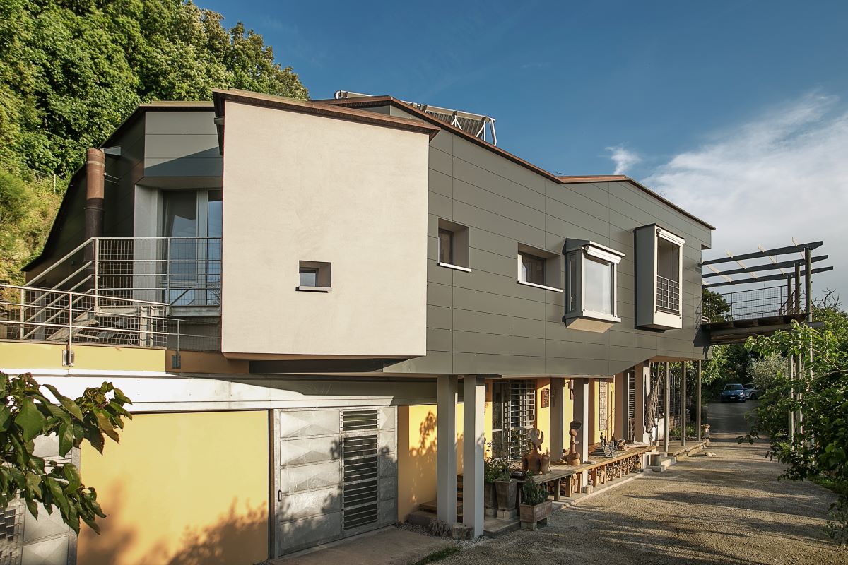 Indice degli argomenti Toggle Che cos’è una facciata ventilata?Vantaggi di un sistema di facciata ventilataCi sono svantaggi nell’optare per una facciata ventilata?Quali materiali si usano per le facciate ventilate?Normativa di riferimentoQuanto è spessa una parete ventilata?Come funziona una facciata ventilataVentilazione naturale o meccanicaDifferenze tra facciata ventilata e facciata tradizionale con cappottoPrestazioni e vantaggi delle facciate ventilate: efficienza energetica e comfortManutenzione e durabilitàFAQ Facciate ventilateQual è la differenza tra cappotto termico e facciata ventilata?Quanto costa una facciata ventilata al mq?Una facciata ventilata ha bisogno di manutenzione?Quanto migliora l’efficienza energetica con una facciata ventilata?Come funziona la facciata ventilata?Come scegliere il tipo di facciata ventilata più adatto?Una facciata ventilata migliora l’efficienza di un edificio?Esempi di progetti con facciate ventilateRecupero villa a BeneventoRiqualificazione edificio commerciale e residenziale a BergamoRiqualificazione villa a Castelnuovo di Porto (Roma)Polo Scienze della Terra dell’Università di PadovaComplesso residenziale Triborgo a MilanoRiqualificazione edificio monofamiliare a Bristol (Inghilterra)Ampliamento scuola elementare a Montijo (Portogallo)Casa singolaIceland Parliament Hotel a ReykjavikFacciata ventilata: le soluzioni proposte dalle aziendeEdiltec – POLIISO® FBBrianza Plastica – Isotec+ElycemEtex – EquitoneRockwool – REDAir™Saint Gobain – Sistema Glasroc® X e pannello Isover X60 VNSogimi – AlucobondSTIFERITE FIRE BTerreal – Facciate ventilate in terracottaVM Zinc – Sistema di facciata ventilata a doghe Ogni edificio “comunica” e si relaziona con l’esterno attraverso le facciate. L’isolamento termico e acustico, la quantità di luce e aria, dipendono dalla conformazione delle facciate, che hanno proprio lo scopo di proteggere e regolare i rapporti tra “dentro” e “fuori”. Esistono diverse tecnologie per realizzare l’involucro esterno, ciascuna con i propri pregi e difetti. Le facciate ventilate sono una soluzione tecnologica efficiente per gli involucri edilizi, in quanto assicurano elevate prestazioni e durabilità nel tempo. Proprio per questo motivo sono spesso scelte per le riqualificazioni e le ristrutturazioni degli edifici esistenti, oltre che per la realizzazione di nuove e performanti costruzioni. Efficienza energetica, comfort abitativo, durabilità e qualità estetica sono combinati in modo vincente in questa soluzione ormai nota e sempre più diffusa. Opzione moderna e performante, offre diversi vantaggi, tra cui anche una grande libertà di espressione progettuale, grazie alla varietà di sistemi e di finiture oggi disponibili sul mercato. Che cos’è una facciata ventilata? Una facciata ventilata è un sistema di rivestimento esterno per edifici che prevede la realizzazione di un’intercapedine d’aria tra il rivestimento esterno e la parete portante dell’edificio. Questo spazio consente una ventilazione naturale che migliora le prestazioni termo-igrometriche dell’edificio. Il sistema è adatto sia per le nuove costruzioni che per gli interventi di riqualificazione dell’esistente. Per realizzare una facciata ventilata è necessario, pertanto, costruire un’apposita struttura e un sistema di fissaggio per il rivestimento esterno, da distanziare rispetto alla parete principale. Un ulteriore strato per l’isolamento termo-acustico, protetto da materiale impermeabile traspirante, è posizionato in aderenza alla costruzione. Proprio questo, infatti, è lo strato visibile dall’esterno e in grado di definire anche esteticamente e formalmente l’identità dell’edificio. Allo stesso tempo, però, è essenziale per creare lo strato d’aria responsabile della ventilazione dell’intero sistema. La camera d’aria dovrebbe avere uno spessore di pochi centimetri, senza eccedere, per evitare di annullare i moti d’aria. Abitualmente si parla di 3-5 centimetri. Il sistema di fissaggio viene realizzato con staffe, strutture e ancoraggi che permettono il montaggio a secco del rivestimento. Le facciate ventilate sono definite come sistemi a sbalzo in quanto lo strato di finitura è indipendente dalla parete, alla quale è vincolato tramite appositi sistemi di ancoraggio e sospensione, che possono essere a vista o a scomparsa. Questi dispositivi hanno lo scopo di distanziare lo strato di finitura della facciata, per creare la camera d’aria delle giuste dimensioni, e allo stesso tempo sorreggerlo. A seconda della facciata, si utilizzano montanti e traverse piuttosto che staffe, generalmente in acciaio o leghe leggere. In alcuni casi, soprattutto per edifici di dimensioni contenute e nel campo della bioedilizia, è possibile che il sistema di ancoraggio sia realizzato in legno. L’intercapedine ha abitualmente una larghezza compresa tra i 3 e i 5 cm, senza ostacoli interni che impediscano il flusso d’aria, permesso da apposite griglie di aerazione poste ai piedi della facciata e alla sua sommità. Considerazioni di progetto delle facciate ventilate Il design di una facciata ventilata richiede considerazioni ad hoc, riguardanti analisi e dimensionamento di tutte le parti – rivestimento esterno, intercapedine d’aria, strato isolante impermeabile, fori di aerazione –, selezione del sistema di aggancio alla struttura primaria dell’edificio e dei materiali (che devono rispondere a precisi requisiti di resistenza al fuoco, agli agenti atmosferici, al carico), previsione delle fasi e delle modalità di intervento manutentivo. Vantaggi di un sistema di facciata ventilata Gli aspetti positivi di una facciata ventilata sono sicuramente rilevanti, poiché, oltre al miglioramento estetico implicano un sostanziale upgrade dell’efficienza e della durata nel tempo della costruzione. In sintesi i vantaggi di una facciata sono: efficienza energetica, poiché l’aria nell’intercapedi