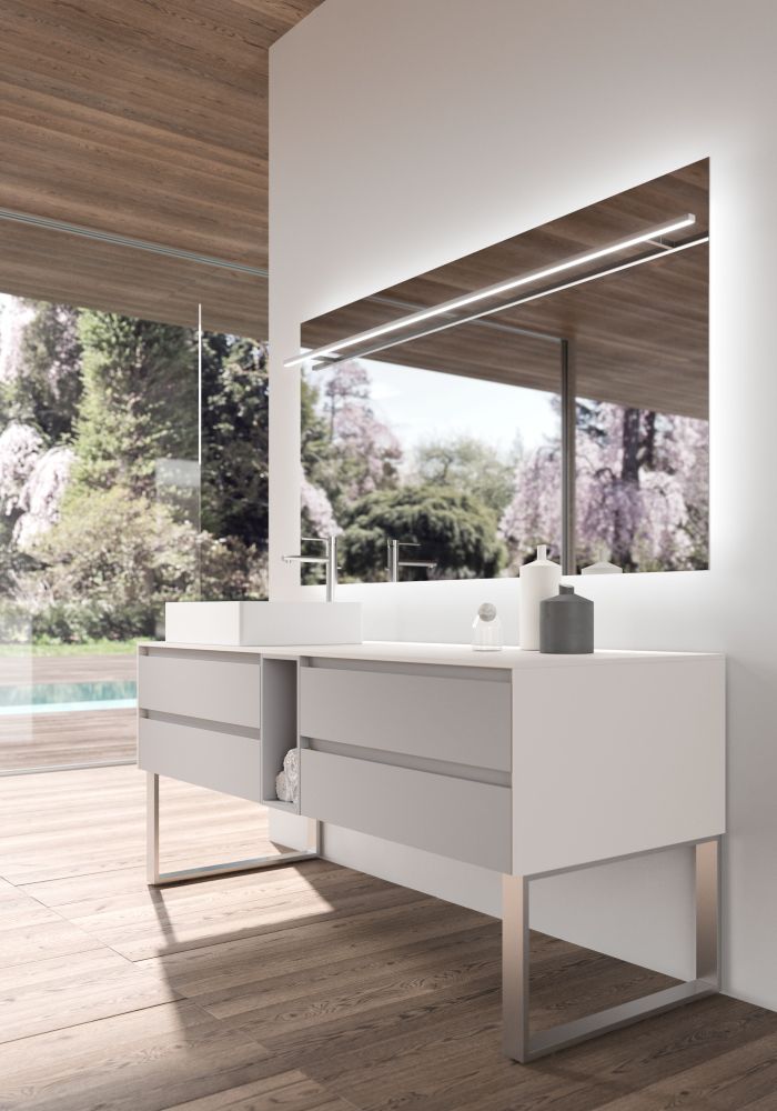 Il mobile da bagno Sipario di ARAN World, con il top in Corian® che esalta il minimalismo delle linee.