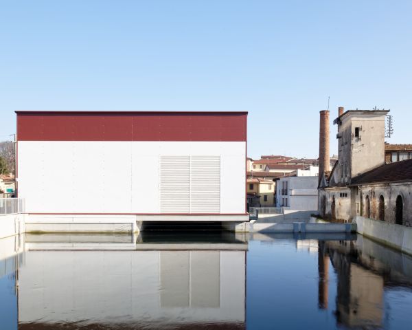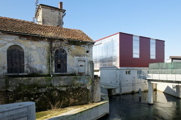 Un importante intervento di riqualificazione ambientale che ha dato vita al nuovo impianto idroelettrico e a un piccolo padiglione che ospiterà un museo dedicato alla storia dell’energia idroelettrica, nel rispetto della natura e della qualità architettonica di Filippo Chiesa Ricotti1 Un percorso didattico-museale Da poco inaugurata, la nuova centrale idroelettrica Seva srl di Pontoglio, si contraddistingue per la forte cura nell’ambientazione, in un contesto caratterizzato da preesistenze di archeologia industriale e di alta qualità naturalistica. Proprio le peculiarità del sito hanno guidato la progettazione del sistema nel suo insieme, dalle opere di presa sul fiume, sino al corpo principale entro cui è ospitata la turbina di generazione della corrente elettrica. Studiato direttamente da Seva srl, società attiva nel campo delle energie rinnovabili, con l’ausilio del team di architetti milanese Archpiùditre +di3, l’intervento ha inteso realizzare un complesso che andasse oltre la specifica funzione tecnica, proponendosi quale percorso didattico-ambientale sul tema della risorsa acqua e del suo uso sostenibile. Elementi centrali di questa “narrazione”, oltre all’alzaia trasformata in pista ciclopedonale piantumata con essenze autoctone, che accompagnano il canale di derivazione lungo il suo intero sviluppo, sono la centrale idroelettrica vera e propria e un piccolo padiglione (ospitato in un manufatto storico oggetto di restauro conservativo), entro cui sarà collocato un polo museale sulla storia dell’energia idroelettrica e sulla sua fondamentale importanza per le Comunità affacciate sul fiume Oglio. Una grande attenzione alla qualità architettonica Corollario di questa tensione, alla realizzazione di un progetto capace di valorizzare l’identità del genius loci, è stata la grande attenzione posta dall’intervento sulla qualità dei manufatti: dai getti di calcestruzzo di definizione delle sponde del canale e delle opere di presa e di restituzione; alla conservazione della memoria materiale dell’edificio destinato a ospitare il piccolo museo; all’involucro traslucido della centrale. Il prospetto est del complesso, caratterizzato dal dialogo serrato con le antiche ciminiere ancora presenti. Per quest’ultimo, il registro assunto è stato quello di un linguaggio assolutamente contemporaneo, ancorché calibrato sulla ricerca di un’armonica proporzione con le preesistenze e in grado di inserirsi con grande discrezione nelle vedute di paesaggio: da e verso il Paese. La scelta, in particolare, di ricorrere a un involucro permeabile alla luce per i lati lunghi del fabbricato (la cui vista frontale, dal piano di campagna, impone l’inevitabile sovrapposizione con la vecchia manifattura retrostante), ha mediato tra due distinti e per certi versi contrapposti obiettivi: mantenere la profondità di campo della veduta, al di là del diaframma rappresentato dal nuovo edificio, e offrire la suggestione di un effetto “lanterna” notturna (concreto richiamo alla funzione della centrale) al calar della luce; evitare che la piena trasparenza della cortina rendesse protagonista dell’intervento il cuore high-tech dei macchinari di produzione dell’energia elettrica, laddove si è al contrario voluto intessere un dialogo non prevaricante e di delicati reciproci rimandi con l’intorno. Una prima ipotesi di soluzione con schermature vetrate, campionata in opera, ha evidenziato una non ottimale resa della cortina rispetto alle linee programmatiche sopra esposte, a causa dell’eccesso di riverbero generato dalla superficie vetrata, nonché di un livello di trasparenza – in regime serale e notturno – tale da iscrivere nei fatti chiaramente alla retorica high-tech la proposta. Ideale, piuttosto, è risultato il ricorso a pannelli in policarbonato alveolare, capaci di perfettamente interpretare lo spirito del progetto e la sua originaria cifra compositiva, in accordo anche alle esigenze a suo tempo giustamente espresse dagli enti di tutela che lo hanno preventivamente esaminato. L’involucro della Centrale è stato oggetto di una specifica analisi da parte dello studio Archpiùditre La differenziazione dei lati corti, invece, ubbidisce alle singolari logiche di affaccio dei due prospetti rispetto alla cornice prossima del contesto: il primo, a est, segnato dai “tagli” verticali dell’involucro, a miglior raccordo con i volumi svettanti di due antiche ciminiere non più in uso (ma pur sempre signficativi landmark per il Paese); il secondo, a ovest, al contrario marcato orizzontalmente da una netta cesura cromatica, utile a riproporzionare percettivamente il corpo della centrale rispetto al contorno. Una biografia professionale all’insegna della lettura poetica del paesaggio Lo studio Archpiùditre +di3, con storia ormai più che ventennale, curatore del progetto per i profili di sensibilità paesaggistica dello stesso, ha proprio nella cifra dell’inserimento ambientale delle personali ipotesi architettoniche, il suo distintivo tratto autoriale. Erede della lezione dell’Architetto Fausto Colombo (già stretto collaboratore di Giancarlo De Carlo), la compagine dei +di3 (Architetti Sangiorgi, Casu, Dell’Adami de Tarczal, Krebs e Porro) ha, infatti, all’attivo numerosi interventi in contesti di pregio naturalisitico o tesi alla riqualificazione in tal senso di comparti sino a quel momento risultanti anche di ben diversa caratterizzazione. Basti qui solo ricordare: il “Centro Parco Dogana Austroungarica” del Consorzio del Ticino Lombardo a Tornavento; la comunità ad alta protezione “La Casa di Nicola” sul lago d’Iseo; la menzione d’onore per il premio indetto dalla rivista Paysage in concomitanza con Expo 2015 (grazie a un delicatissimo progetto di parco otorfrutticolo urbano nell’ex scalo ferroviario di Porta Romana a Milano); la sede del Carrefour Europeo per l’Agricoltura a Magenta; le tante consulenze svolte nel campo, per progetti i
