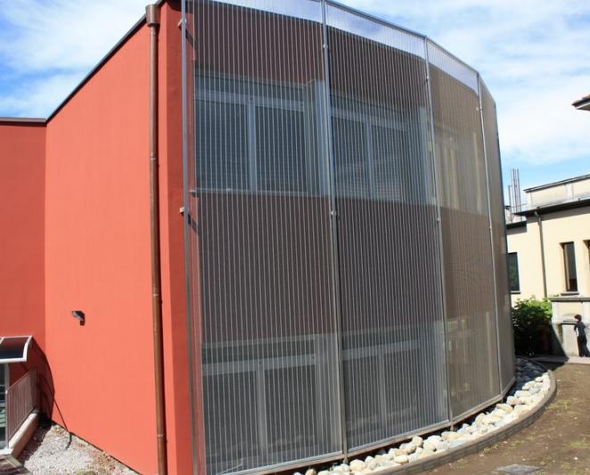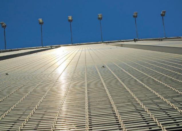 I tessuti metallici sono entrati nell’universo dell’architettura conquistando visibilità grazie al loro impiego in importanti progetti. Reti metalliche per l’edilizia e per il progetto Da sempre l’interesse verso nuove tecnologie costituisce il nutrimento della creatività degli architetti e dei progettisti che ritengono necessario misurarsi, e a volte scontrarsi, con le molteplici possibilità offerte dai prodotti edilizi “innovativi”. In particolare, come è noto, negli ultimi decenni si sono resi disponibili molti prodotti non tradizionalmente legati alla consuetudine del costruire. Per ciascuno di essi il punto cruciale è, superata la naturale curiosità o l’entusiasmo, cercare di mettere a fuoco le effettive possibilità d’uso e le prestazioni che da tali elementi sia ragionevole aspettarsi. Questa premessa risulta necessaria se ci si riferisce al recente impiego in edilizia di tessuti metallici, affacciatesi vistosamente alla ribalta forti di alcune realizzazioni internazionali di grande rilievo, quali fra le più note, la Biblioteca Nazionale di Francia a Parigi o il Polo Espositivo di Rho Pero di Fuksas. Questi progetti, solo per menzionarne alcuni, hanno in comune l’uso di un materiale insolito quanto innovativo – il tessuto metallico – che necessita per essere apprezzato nelle sue diverse possibilità d’uso di alcuni chiarimenti e precisazioni. Si tratta infatti di un componente che, provenendo da altri settori quali quello del filtraggio industriale e delle tecnologie applicate ai nastri trasportatori, ha trovato applicazioni in edilizia, inizialmente nel campo dei rivestimenti interni e successivamente nel settore dei rivestimenti di facciata. Costacurta a Milano per il Nuovo Polo Fieristico Rho-Pero I tessuti metallici per l’architettura Come già accennato per tessuto metallico si intende un componente costruito dall’intreccio a telaio di “fili” molto particolari, normalmente di acciaio inossidabile. In alcune applicazioni sperimentali va rilevato come siano stati utilizzati fili di rame o titanio, ma esperienze in questo senso non hanno dato risultati soddisfacenti. La trama rappresenta la parte più rigida della struttura, ed è di solito realizzata con barre pretagliate della lunghezza del tessuto finito con un diametro compreso fra 0.5 mm e 3 mm circa. Il filo che costituisce l’ordito, generalmente più flessibile, può essere invece un cavo singolo o più frequentemente essere formato da due o più cavi ritorti accoppiati fra loro, con un diametro complessivo che varia fra 0.5 e 2 mm. A seconda del tipo di filo usato e del passo fra trama e ordito può configurarsi un tessuto assai diverso per caratteristiche, aspetto, disegno. E’ questa infatti una delle peculiarità dei tessuti metallici, ovvero la possibilità di disporre di una articolata gamma di possibili varianti, sia di serie sia eventualmente realizzate “ad hoc” che li rendono idonei, a seconda del tipo prescelto, ad usi assai diversi fra loro. Realizzazione della ristrutturazione della sede di CMCT srl. Questo rivestimento è solo uno dei possibili impieghi estetici e funzionali delle lamiere forate in architettura a cura di Gaudenzi Principali applicazioni I tessuti metallici trovano differenti interessanti impieghi, che comprendono applicazioni per esterno oppure per interni e design. Il primo caso è sicuramente quello più complesso ed interessante, in quanto rappresenta una sfida alle effettive potenzialità di questo componente: va però distinto, per chiarezza, se si intenda utilizzare il tessuto metallico come strato esterno di rivestimento in un sistema di facciata o se il tessuto stesso rappresenti l’unico strato di separazione fra interno ed esterno. Isolamento termico e risparmio energetico per un’originale soluzione ombreggiante e schermante a cura di TTM Rossi Uso come rivestimento Facendo riferimento al caso del Complesso Sportivo realizzato da Dominique Perrault a Berlino la funzione svolta dal tessuto metallico, in conformità con quanto indicato dalla Norma UNI 8979*, è quella di “strato di protezione”, quindi collocato esternamente alla parete con funzione di barriera contro gli agenti atmosferici, eventualmente dotato di funzione decorativa. E’ in questo caso evidente come la funzione di protezione dagli agenti atmosferici sia da intendere in modo diverso da quanto esplicitato da uno strato continuo, in quanto permette un passaggio parziale di aria, luce, acqua. Nondimeno, in questo caso particolare il tessuto protegge e riveste i sottostanti pannelli di alluminio coibentato, a loro volta connessi con la struttura metallica portante. Inoltre permette di integrare il rivestimento con le dotazioni tecniche: in facciata le bocche di ventilazione e le installazioni di servizio sono nascoste dalla rete e, analogamente, nello strato posto in copertura le singole parti su telaio sono integrate con i lucernari. Dominique Perrault, complesso sportivo a Berlino. In generale, un tessuto metallico può essere scelto per una applicazione in facciata con funzione di rivestimento in virtù dei suoi requisiti prestazionali. Se opportunamente tesato ed ancorato alla struttura di supporto può resistere al sistema delle sollecitazioni derivanti dal peso proprio e dal carico di servizio senza deformazioni tali da pregiudicarne la stabilità; essendo permeabile può resistere facilmente all’azione del vento senza subire deformazioni permanenti, anche per superfici d’impatto considerevoli. Consente una buona resistenza agli urti che possono prodursi nel corso d’uso, ed inoltre fornisce una efficace barriera non vandalizzabile. Per questa sua specifica caratteristica, non essendo facilmente ricopribile di scritte o intagliata, trova un suo impiego in tutti i casi in cui il rischio di questo tipo di aggressione sia maggiore. Per quanto riguarda la sicurezza in caso di incendio, inoltre, i tessuti metallici sono normalmente realizzati utilizzando funi e b