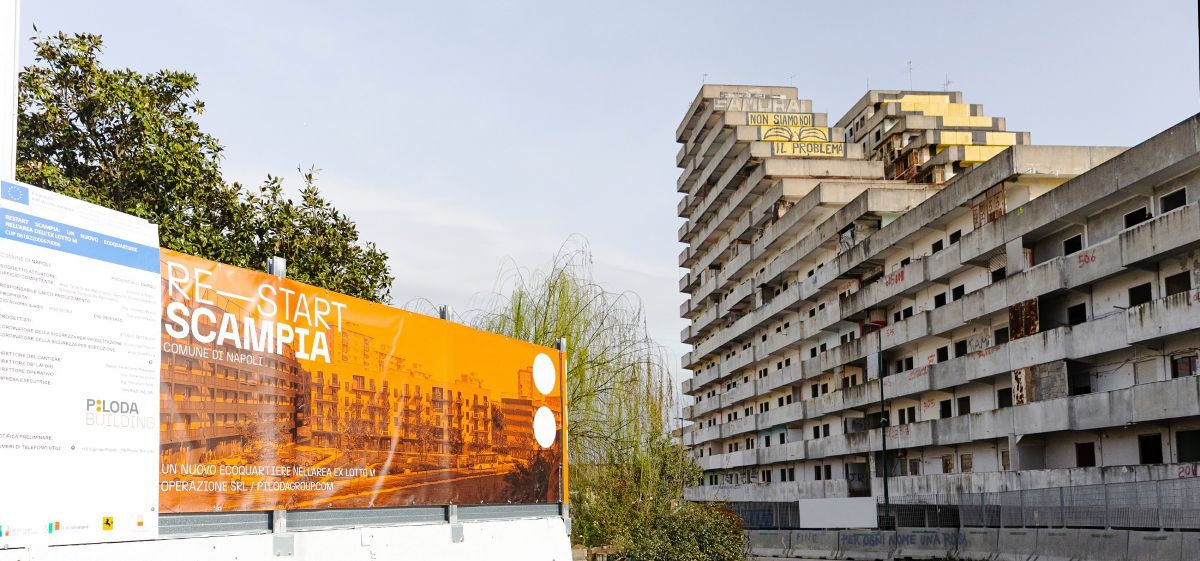 Indice degli argomenti Toggle Nuovo ecosistema urbanoEdifici a basso impattoSostenibilità al centro del rilancio di ScampiaDialogo con istituzioni e residentiIl quartiere come spazio umano Non un restyling architettonico del complesso residenziale delle Vele, costruito fra il 1962 e il 1975, emblema di una stagione controversa dell’edilizia residenziale pubblica in Italia; ma un’opportunità vera e propria di ricostituzione del tessuto sociale per restituire la dignità e qualità del luogo. L’intervento di rigenerazione urbana del quartiere Scampia a Napoli, la cui cantierizzazione è iniziata a fine 2024, fa parte del progetto “ReStart Scampia” finanziato con 159 milioni di euro da fondi PNRR, PON Metro e Periferie, che comprende la demolizione delle Vele Gialla e Rossa, insieme con la riqualificazione della Vela Celeste e la costruzione di 433 nuovi alloggi energeticamente autosufficienti. A completare l’insediamento saranno spazi dedicati all’agricoltura urbana, un parco pubblico, una fattoria didattica, un mercato di prossimità, una scuola per l’infanzia e un centro civico per attività sociali e culturali. Senza dimenticare il passato, con la conservazione dei graffiti che adornano la Vela Celeste e che continueranno a raccontare il disagio di chi vi ha vissuto. Nuovo ecosistema urbano Da quartiere critico a nuovo insediamento accogliente e vivibile, il passaggio (non) è breve. Soprattutto se parliamo di edilizia residenziale pubblica. L’intervento progettuale, condotto da Settanta7 in collaborazione con Studio Perillo e Studio Valle Progettazioni, ha utilizzato soluzioni impiantistiche di facile gestione e manutenzione e materiali durevoli nel tempo. Dal punto di vista architettonico, i nuovi edifici sono caratterizzati dallo studio dei prospetti e dei materiali di facciata che conferiscono alle costruzioni ritmi e superfici diversificate, per evitare ripetitività e monotonia. Pur mantenendo la stessa soluzione tecnologica a livello strutturale, edile e impiantistico, la diversa cromia delle facciate e il differente sviluppo dei balconi rende ogni edificio un corpo con proprie caratteristiche architettoniche peculiari. Masterplan Restart Scampia – Image by Settanta7 In particolare, il progetto di riqualificazione del Lotto M si configura come un sistema complesso, costruito attorno all’idea di quartiere come ecosistema urbano, dove architettura, paesaggio e comunità si integrano per generare un ambiente più equo, sostenibile e abitabile. La realizzazione del progetto prevede l’impiego di 100 unità lavorative, 25 ditte specializzate e 50, tra architetti e progettisti del Piloda Building. “Il progetto del Lotto M è stato concepito non come un semplice intervento edilizio, ma come un atto di rigenerazione urbana e sociale – spiega Daniele Rangone, co-founder e Chief Visual Officer di Settanta7 -. “ReStart Scampia” si fonda su una logica integrata che ha guidato l’intero processo di rigenerazione, articolandosi in azioni coordinate su diversi livelli: edilizio, infrastrutturale, sociale e ambientale”. L’area del Lotto M prenderà vita entro due anni. Al posto dell’edificio sorgeranno 145 alloggi nuovi: 97, suddivisi nei tre edifici del Lotto A; 48 nel lotto L, con asili nido, Civic Center, spazi comunitari e un intero ecosistema urbano. Rendering Restart Scampia – Credit Settanta7 L’intervento è pensato per creare un ecoquartiere integrato, che risponde ai bisogni abitativi, sociali, educativi e ambientali. L’intera area sarà immersa nel verde e dotata di spazi per l’agricoltura urbana, un parco pubblico e una fattoria didattica. “La valorizzazione del paesaggio urbano come infrastruttura viva ha rappresentato un ulteriore elemento di innovazione. Gli spazi esterni non sono stati concepiti come semplice complemento dell’edilizia, ma come dispositivi attivi di socialità, ecologia e cura condivisa, capaci di incidere direttamente sulla qualità della vita e sull’identità del luogo”. Edifici a basso impatto Tutti i nuovi edifici previsti dal piano di rigenerazione sono progettati secondo i criteri NZEB (Nearly Zero Energy Building), ovvero strutture a consumo energetico quasi zero, in grado di ridurre in maniera significativa sia i costi per le famiglie sia l’impatto ambientale. Per raggiungere questi obiettivi ambiziosi è stato adottato un approccio integrato che combina materiali ad alte prestazioni con soluzioni tecnologiche all’avanguardia. Il cantiere del progetto Restart Scampia a marzo 2025 “Le strutture edilizie sono state realizzate con materiali isolanti di ultima generazione, capaci di garantire elevate prestazioni termiche e acustiche. Materiali isolanti, infissi a taglio termico e vetri basso emissivi permettono di contenere le dispersioni e mantenere stabile il microclima interno, riducendo al minimo la necessità di riscaldamento e raffrescamento”. A ciò si aggiungono impianti fotovoltaici e soluzioni per la produzione di energia da fonti rinnovabili, che rendono gli edifici in larga parte autosufficienti. “Anche la gestione delle risorse idriche è stata ottimizzata: i nuovi insediamenti prevederanno sistemi di raccolta e riutilizzo delle acque piovane, irrigazione intelligente per gli spazi verdi e dispositivi a basso consumo per l’uso domestico”. L’attenzione alla sostenibilità si estende inoltre alla scelta di materiali a basso impatto ambientale, in linea con i principi dell’economia circolare. Il risultato è “un quartiere che non solo risponde agli standard europei più avanzati in materia di energia e ambiente, ma che dimostra come l’edilizia pubblica possa essere terreno fertile per l’innovazione, la qualità e la responsabilità ecologica”. Sostenibilità al centro del rilancio di Scampia Sostenibilità e sfruttamento ottimale delle risorse energetiche sono il cuore del progetto architettonico e urbanistico per il rilancio di Scampia. La gestione ottimale dell’energ