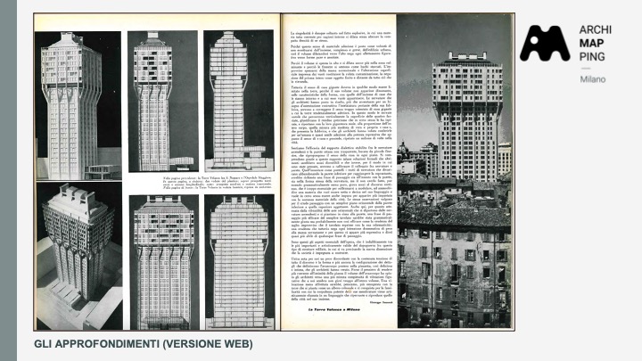 Si parte con edifici realizzati a metà ‘800, tra cui per esempio il Cimitero Monumentale di Carlo Maciachini (1860-97) per passare poi alle architetture del ‘900, a partire dagli anni Venti come la Casa della Meridiana di Giuseppe De Finetti, alle architetture realizzate fra le due guerre, tra cui la Stazione Centrale di Ulisse Stacchini, agli edifici edificati nel dopoguerra in centro a Milano, come la Casa d’abitazione di Luigi Caccia Dominioni in piazza Sant’Ambrogio, fino agli immobili costruiti tra la fine degli anni ’60 e i primi ’70 firmati da importanti architetti, tra cui citiamo le torri al Gallaratese di Vico Magistretti. Naturalmente sono tanti gli edifici pubblici, le scuole e le Università presenti nell’APP, con interventi che arrivano anche ai giorni nostri, tra cui la Ristrutturazione del Teatro alla Scala di Mario Botta (2002-04), la Fondazione Prada di OMA (2011-18) e la Nuova sede dell’Università Bocconi (2002-2008) di Grafton Architects. Spazio anche ai moderni grattacieli, realizzati dagli anni ’50, come la Torre Velasca di BBPR, fino ai giorni nostri, con la Torre Generali di Zaha Hadid Architects.