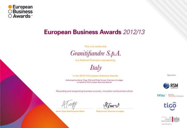 25/09/2012 GRANITIFIANDRE finalista agli European Business Awards GRANITIFIANDRE è finalista agli European Business Awards. Tra le 15.000 aziende europee iscritte, 29 le eccellenze ...