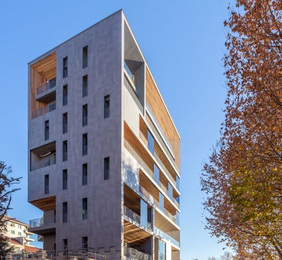 Un nuovo edificio elegante, eclettico, naturale nel centro di Torino firmato da +Studio Architetti, vincitore della settima edizione del concorso “La Ceramica e il Progetto 2018” a cura di Fabiana Valentini Un palazzo unico e raffinato, nel cuore di Torino: +Studio Architetti è stato incaricato della progettazione della nuova affascinante architettura situata in Piazza Bernini, vincitrice della settima edizione del concorso “La Ceramica e il Progetto” assegnato da Confindustria Ceramica e Cersaie, che premia le migliori architetture realizzate in Italia con piastrelle made in Italy. Il progetto di Bernini2 – La Villa e la Torre integra un edificio preesistente a Torino, La Villa, donandogli un design nuovo nel rispetto dell’anima classica. La costruzione degli anni 50 è stata così ridefinita: il progetto prevede l’edificazione di un volume alto, un corpo che si eleva sopra un basamento dagli interpiani di 4 metri. Il nuovo edificio si plasma sulla palazzina degli anni 50 senza toccarne l’antico splendore: il basamento del nuovo sistema edilizio si plasma sul prospetto principale della palazzina storica, lo ingloba conservandone gli elementi geometrici e materici. Il progetto di +Studio Architetti prevede giardini privati al piano terra, pensili all’ultimo piano e ampi terrazzi. Il meglio del design si combina con un’atmosfera rilassante e green: completamente immerso nel verde, Bernini2 offre momenti di benessere e regala il piacere di vivere la natura. L’edificio sorge nell’area residenziale Cit-Turin che si caratterizza per la varietà di proposte architettoniche per una clientela di fascia medio alta, e così anche Bernini² propone diverse soluzioni: dalla villa urbana con giardino al piano terra, agli attici degli ultimi piani, con giardini pensili e piscine sul tetto Le unità abitative sono dotate delle soluzioni più innovative, oltre a finiture di pregio e uso di materiali all’avanguardia: tutto ciò ha consentito all’architettura di ottenere la classe energetica A. Ceramiche Keope per Bernini2 In un contesto ricercato come quello di Bernini2 entra in gioco l’eleganza delle soluzioni di Ceramiche Keope, azienda specializzata nella produzione di pavimenti e rivestimenti in grès porcellanato. Per il progetto sono state selezionate ceramiche della serie Code ed Edge utilizzate per la facciata realizzata da Geos Italy. Le collezioni di Ceramiche Keope utilizzate nel progetto Bernini2: Code, Edge, Point, Cypro e In&Out Percorsi Extra. Lo stile inconfondibile di Keope è stato scelto per adornare i balconi e i camminamenti esterni con il sistema di pavimenti K2: si tratta delle collezioni Point nel colore Sand (formato 45X90), Cypro nel colore Grey (40X120) e ancora In&Out Percorsi Extra nel colore Pietra di Barge, formato 45X90, dal forte stile contemporaneo. Scheda Progetto Bernini² – La Villa e la Torre Architetto: Filippo Orlando +Studio Architetti Photo Credits: Emmephoto (TO) – Mario Forcherio Consiglia questa notizia ai tuoi amici Commenta questa notizia