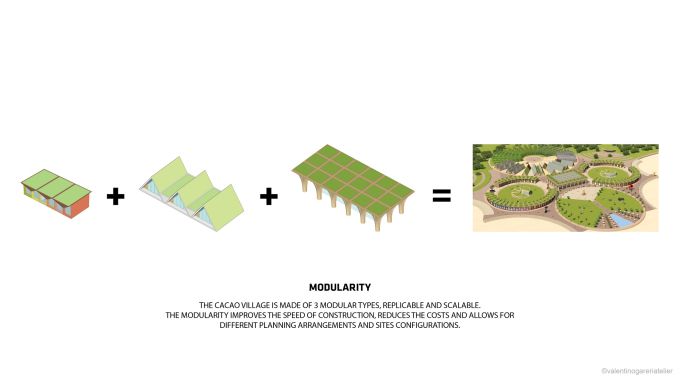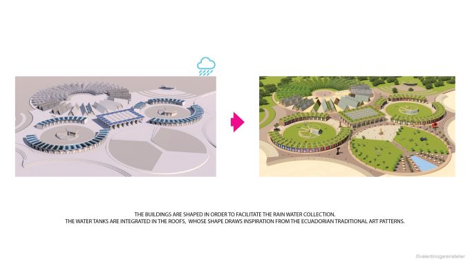Cacao Ecovillage è un progetto sostenibile, modulare e dai connotati hi-tech, destinato ad ospitare gli innovatori dell’economia circolare. Un villaggio che non perde il legame con la comunità locale e le sue tradizioni. Energeticamente autosufficiente, compensa l’impatto economico e sociale dell’industria del cacao attraverso la blockchain, tracciando i prodotti e riducendo al massimo gli sprechi. la redazione Indice degli argomenti: Cacao Ecovillage: modulare e connesso Un progetto con un’identità ecologica ben definita Realizzato per il produttore di cioccolato MUZE, assieme all’organizzazione no profit ecuadoregna Avanti, il Cacao Ecovillage è il villaggio progettato dallo studio di architettura Valentino Gareri ottenuto dalla stampa 3D degli scarti del cacao. Il progetto sarà costruito a Pedernales, una contea nella provincia costiera di Manabi, in Ecuador, dove lavorano e vivono i coltivatori di cacao e le loro famiglie. Definita la “Silicon valley” per gli innovatori dell’economia circolare, il progetto ospiterà startup, fintech, foodtech, produttori e ricercatori. Una destinazione sostenibile, a emissioni zero, uno spazio di co-working dove trovare ispirazione e scambiarsi le idee. La fabbrica di cioccolato “Per la progettazione dell’intero villaggio ci siamo ispirati ai principi fondamentali dell’economia circolare. Gli scarti di cacao, risultato del processo di produzione del cioccolato, saranno riutilizzati per la stampa 3D di parti del villaggio. I rifiuti non si trasformano solo in una risorsa, ma in architettura. In un futuro non troppo lontano potremo progettare interi edifici sfruttando materiali naturali, riciclarli a fine vita per crearne di nuovi o per restituirli alla natura”, dichiara Gareri . Il Cacao Ecovillage è modulare e connesso Il progetto dello studio di architettura incorpora cinque principi fondamentali: modulare, funzionale, sostenibile, tech-enable e legato alla comunità. Cacao Ecovillage è modulare, estensibile, replicabile e adattabile in base al sito dove sorgerà. Il centro eventi del Cacao Ecovillage È funzionale perché è in grado di ospitare un centro di lavorazione del cacao, spazi di co-working e spazi living. Un riferimento culturale per le comunità locali che lo ospiteranno e una destinazione turistica consapevole. È sostenibile perché autosufficiente dal punto di vista energetico grazie agli impianti fotovoltaici, alla ventilazione naturale degli edifici e perché gli stessi sono realizzati con materiali locali come bambù, legno e stampa 3D di biofilamenti derivanti dagli scarti della lavorazione dei guscio di cacao. E’ techenable perché al suo interno si utilizzano tecnologie come la blockchain e il suo funzionamento sfrutta le potenzialità dell’Internet Of Things. In ultimo è legato alla comunità perché le sue facciate traggono ispirazione dalle colorate case ecuadoriane e dai frutti colorati degli alberi di cacao. Un progetto con un’identità ecologica ben definita Il Cacao Ecovillage è dotato di una fitta rete di vie ciclo-pedonali. Grazie alla presenza diffusa di colonnine di ricarica, si incentiva l’uso dei veicoli elettrici, mentre il transito di auto e camion è limitata solo intorno alle zone di produzione. La forma degli edifici facilita la raccolta dell’acqua piovana: i serbatoi d’acqua sono integrati nei tetti, la cui forma trae ispirazione dall’arte ecuadoriana. Gli architetti hanno lavorato per sviluppare un progetto contraddistinto da una nuova classe di infrastrutture sostenibili e intelligenti, capaci di migliorare l’impatto ambientale e sociale dell’industria del cacao sul territorio. L’ingresso del centro Eventi La missione di MUZE è creare nuovi prodotti etici a base di cacao utilizzando al massimo il frutto. Attualmente circa l’80% del prodotto è sprecato. Grazie alla tecnologie blockchain, i prodotti saranno altamente tracciabili, si ridurranno gli sprechi e si compenserà l’impronta di carbonio, migliorando il tenore di vita degli agricoltori e delle loro famiglie, contrastando la povertà. Img by Valentino Gareri Consiglia questa notizia ai tuoi amici Commenta questa notizia