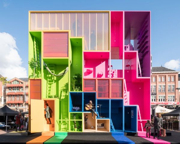 MVRDV riflette sul futuro del concetto “abitare”, da qui nasce l’installazione colorata della Dutch Design Week. a cura di Fabiana Valentini Rosa, verde, blu, arancione: La Dutch Design Week dello scorso anno è stata invasa dai colori dell’installazione di MVRDV in Markt Square: si tratta di nove ambienti totalmente trasformabili e riconfigurabili secondo differenti esigenze abitative. MVRDV, in collaborazione con l’istituto ricerca The Why Factory fondato da Winy Maas co-fondatore dello studio, ha creato un’installazione architettonica che traducesse fisicamente il concetto di “città flessibile” del futuro. (W)ego, “The Future City is Flexible” è un progetto che indaga la nuova concezione dell’abitare: nel futuro le città saranno sempre più densamente popolate e occorrerà ripensare gli spazi in funzione della condivisione. L’habitat del futuro secondo MVRDV Da ego a (W)ego: i desideri individuali degli abitanti di questo inusuale hotel cambiano in funzione del vivere comune. I nove ambienti coloratissimi dell’installazione in Markt Square rappresentano i desideri di ciascuno di noi: MVRDV ci fa comprendere che in un futuro sovraffollato inevitabilmente questi desideri dovranno collimare con quelli di altri, così da creare condizioni abitative che soddisfino le esigenze di tutti. Spazi che si riconfigurano per vivere armonicamente in condivisione. A ispirare MVRDV nella realizzazione del progetto per la Dutch Design Week è stata la struttura dell’albergo, un “insieme” di ambienti diversi in grado di ospitare differenti personalità e desideri. Il design si fa quindi partecipativo: nell’habitat del futuro dovremo imparare a relazionarci con i desideri degli altri al fine di trovare un ambiente comune in cui coesistere, gli utenti dovranno quindi negoziare lo spazio fra loro per ottimizzare i suoi usi. Scheda progetto Wego Curatori: Winy Maas, MVRDV, The Why Factory, Gemeente Eindhoven, TU Eindhoven e Dutch Design Week Evento: Dutch Design Week 2017 Consiglia questa notizia ai tuoi amici Commenta questa notizia