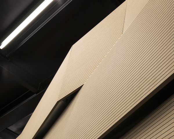 Pannello ad assorbimento acustico Sistema di pannelli per pareti formati da superfici MDF scanalate per ottenere proprietà di assorbimento acustico. ...