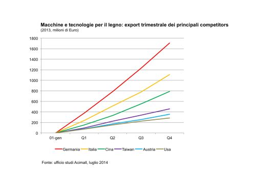 I dati relativi all’andamento dell’industria mondiale delle tecnologie per il legno, elaborati dall’Ufficio studi di Acimall, parlano chiaro: tutti i principali competitor mondiali hanno registrato un andamento negativo. Calano le esportazioni della Germania (1.715 milioni di euro, meno 3,1 per cento rispetto al 2012), per quanto compensate da un sempre forte mercato interno; calano del 3,1 per cento, attestandosi a 1.111 milioni, anche le esportazioni dall’Italia, una tendenza al ribasso già manifestatasi a fine 2012 e che, purtroppo, non trova conforto in un mercato nazionale stagnante. Diminuisce l’export Usa (meno 7,5 per cento rispetto al 2012, per complessivi 283 milioni di euro); flessione, per quanto contenuta, per l’Austria (meno 0,6 per cento, 355 milioni di euro) e per Taiwan (meno 0,2 per cento per un export complessivo pari a 457 milioni di euro). Meglio rispetto al 2012 solo la Cina, le cui esportazioni si attestano a 790 milioni di euro, il 12,6 per cento in più rispetto al 2012, un risultato che vale il terzo posto nella classifica dei più forti esportatori mondiali di tecnologie per il legno. Il mondo del legno, dunque, rimane in una fase economica improntata a una sostanziale “riflessione”; per quanto gli andamenti siano estremamente differenti in termini di valori assoluti, possiamo comunque dire che la ripresa per il mondo della trasformazione del legno e dei suoi derivati non è ancora arrivata. Se guardiamo alla classifica dei primi 50 Paesi di destinazione, appare evidente che nel 2013 gli Usa sono stati i migliori clienti dei produttori mondiali di tecnologie per il legno. Nel 2013, infatti, le imprese della filiera statunitensi hanno comperato macchine per un valore pari a 836 milioni di euro, ben il 12 per cento in più rispetto al 2012. Secondo posto per la Russia, con acquisti per 500 milioni: una cifra ragguardevole, ma decisamente inferiore (meno 24,8 per cento) rispetto ai risultati del 2012. Un brusco ridimensionamento per uno dei mercati più “frizzanti” degli ultimi anni e che si trova a fare i conti con una situazione geo-politica difficile e l’intrinseca debolezza del rublo. Sul terzo gradino del podio la Germania, che vede aumentare gli investimenti in tecnologia prodotta all’estero del 10,9 per cento, per un valore di 397 milioni di euro. Per l’Italia l’undicesimo posto della classifica, con acquisti da produttori stranieri, soprattutto tedeschi e cinesi, per circa 143 milioni di euro. In termini più generali, dai dati elaborati dall’Ufficio studi della associazione confindustriale emerge che nella classifica dei primi 50 ben 28 Paesi segnano una contrazione delle importazioni. Brutte notizie in particolare dal Brasile (meno 32 per cento), dalla Bielorussia (meno 39,7 per cento) e dalla Malesia (meno 40,1 per cento), oltre che da Estonia e Lettonia (meno 45 per cento). Solo 22 i Paesi “virtuosi”: la Turchia si insedia saldamente all’ottavo posto della classifica, con un aumento dell’import del 14,8 per cento (167 milioni); interessante anche il trend della Ungheria, con acquisti di tecnologia straniera “significativi” (53 milioni di euro) e una crescita del 72 per cento rispetto al 2012. Da segnalare, in conclusione, il “rimbalzo” dell’Algeria, al quarantatreesimo posto della classifica, che registra una crescita del 43,5 per cento (32,4 milioni di euro). Il commercio del legno nel 2013 2 Consiglia questa notizia ai tuoi amici Commenta questa notizia