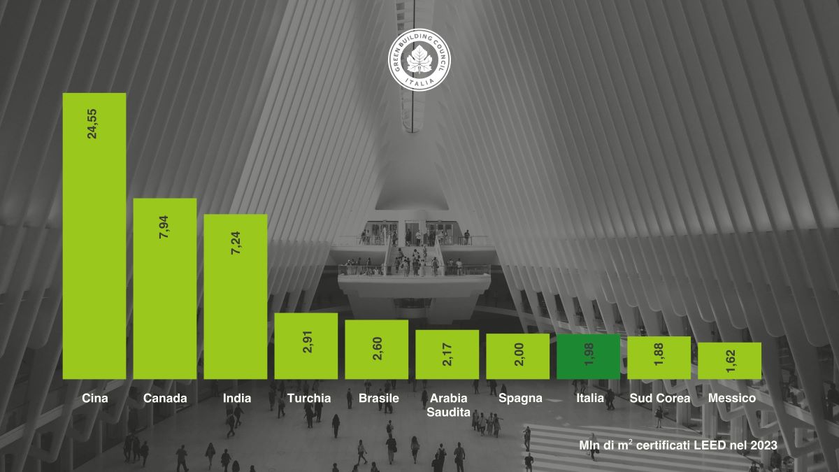 A cura di: Federica Arcadio Leed® (Leadership in Energy and Environmental Design) è il sistema di certificazione di edifici green maggiormente diffuso a livello mondiale. Si tratta di una certificazione sempre più apprezzata anche nel nostro Paese, come dimostrano i numeri relativi al 2023 pubblicati dall’U.S. Green Building Council (USGBC): l’Italia si posiziona all’ottavo posto nella classifica mondiale per numero di edifici certificati Leed®. La nostra nazione e la Spagna sono gli unici due Stati europei presenti in questa classifica. Il risultato mostra come l’intera filiera edilizia e immobiliare nazionale abbia intrapreso con convinzione un percorso di transizione sostenibile. Un cambio culturale in atto Come ha sottolineato Fabrizio Capaccioli, Presidente GBC Italia, la visione orientata alla sostenibilità in Italia si sta radicando non solo tra i player della filiera edile e tra le pubbliche amministrazioni, ma soprattutto tra i cittadini. Secondo una ricerca condotta da Eumetra per il Green Building Council Italia, ben otto italiani su dieci sono sensibili alle tematiche di sostenibilità a partire dall’ambiente costruito e sono consapevoli della necessità di efficientare il proprio immobile. Proprio le certificazioni e i protocolli energetico-ambientali possono supportare i proprietari e i gestori di edifici a misurare il proprio impatto e raggiungere target di sostenibilità sempre più ambiziosi. Qual è l’impatto ambientale degli edifici certificati LEED® In Italia nel 2023 sono stati certificati 135 progetti Leed®, per una superficie totale che supera i 1,93 milioni di metri quadrati lordi (GSM). L’incremento rispetto al 2022 è stato significativo: 39 progetti certificati in più, a conferma che un cambiamento culturale è in atto. Gli investimenti in transizione green, verso un’edilizia sempre più sostenibile e climaticamente neutrale, hanno dato risultati concreti. Come emerge dal primo Impact Report di GBC Italia realizzato in collaborazione con The European House – Ambrosetti, gli edifici certificati Leed® nel 2023 hanno portato un risparmio di 330 mila tonnellate di scarti edilizi, 170 mila tonnellate di CO2 e di 1,3 miliardi di litri d’acqua potabile, per un valore economico di 111 milioni di euro. Non resta che proseguire in questa direzione. Consiglia questa notizia ai tuoi amici Commenta questa notizia