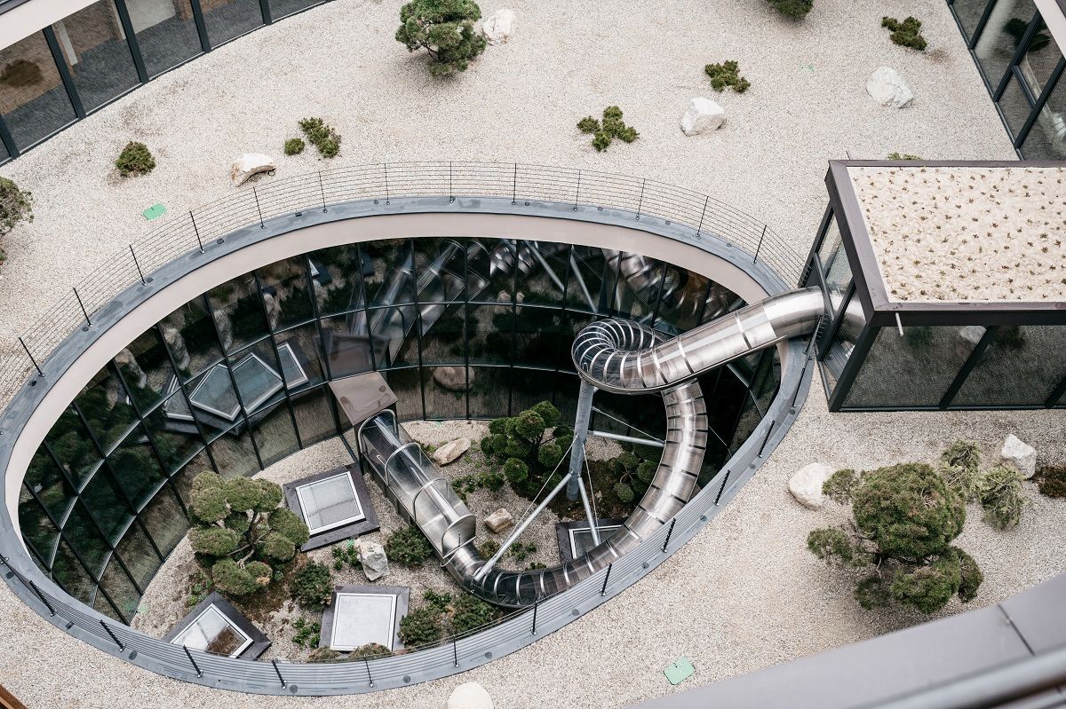 A cura di: Tommaso Tautonico Indice degli argomenti Toggle L’hotel con la forma di lingua di ghiacciaioUn family hotel sostenibile A 1.450 metri di altitudine, circondato dalle montagne della Val Pusteria e la Valle Isarco sorge l’hotel a 5 stelle Familiamus. Progettato dallo studio di architettura Dejaco + Partner, l’hotel è un concentrato tra design, innovazione e tradizione altoatesina. Familiamus è un family hotel con stanze accoglienti, calde, aree esclusive per bambini e con una vista panoramica sul paesaggio circostante. “Mi sono divertito a creare questa forma originale e armoniosa, traendo ispirazione dal paesaggio altoatesino con le sue montagne, i ghiacciai, le slavine” ha dichiarato l’architetto Ralf Dejaco. “Ho pensato a una forma che, oltre a essere piacevole alla vista e ad integrarsi con il paesaggio circostante, è anche funzionale perché garantisce un’ottima esposizione solare alle 70 ampie camere familiari, che con questa soluzione hanno tutte un balcone esterno e una vista panoramica sulla Valle Isarco, il Sass de Putia e la Val Pusteria” conclude. L’hotel con la forma di lingua di ghiacciaio Situato sull’altopiano di Maranza, ciò che colpisce a prima vista è la forma dell’hotel. Armoniosa e arrotondata, vista dall’alto il Familiamus ricorda la forma della lingua di un ghiacciaio. L’esterno è dominato da una facciata in cui sono protagonisti legno e vetro, due materiali scelti per sottolineare il rapporto con le montagne e con la natura che lo circonda. All’interno spazi accoglienti, design sofisticato, fanno si che il fascino dello stile alpino si fonda con la modernità. Colori caldi ed elementi d’arredo in legno sottolineano il ruolo da protagonista della natura. Le stanze sono spaziose ed avvolgenti: letto extra-large, ampi bagni con maxi-lavabo, doccia e fasciatoio, cabina armadio e camerette separate per bambini con letti singoli. Tutte le stanze hanno un balcone esterno con una vista mozzafiato che spazia dal massiccio dello Sciliar fino alla Rocca dei Baranci. Una vista che invita gli ospiti a immergersi nella bellezza dei paesaggi naturali dell’Alto Adige in ogni stagione. Per intrattenere i più piccoli, l’hotel ha pensato ad un’area esclusiva, il Magolix Club, uno spazio di oltre 1000 metri quadri con laboratori del legno e di pittura, sale dedicate al gioco, palestra interna, percorso atletico Ninja-Starrior e parete di arrampicata per le attività sportive. Uno degli scivoli tubolari che collegano i piani del Familiamus hotel Per spostarsi da un piano all’altro dell’hotel, c’è un’alternativa più divertente delle convenzionali scale e ascensori: ogni piano dell’hotel è collegato al piano terra con degli scivoli tubolari che si snodano nel cortile interno. Un family hotel sostenibile Al piano più alto dell’hotel trova spazio una grande terrazza panoramica che ospita l’infinity pool e la vasca idromassaggio adults-only. Da qui partono le escursioni alla scoperta dell’altopiano e del comprensorio Gitschberg Jochtal. All’interno, nell’area benessere trovano spazio numerose piscine, scivoli, una family sauna e un’area relax con snack bar. Infine, l’hotel è stato progettato senza dimenticare il tema della sostenibilità ambientale: Familiamus, grazie al suo basso consumo energetico per metro quadro, ai metodi sostenibili per il riscaldamento e all’uso delle fonti energetiche rinnovabili, è certificato Casa Clima in classe A. Consiglia questa notizia ai tuoi amici Commenta questa notizia