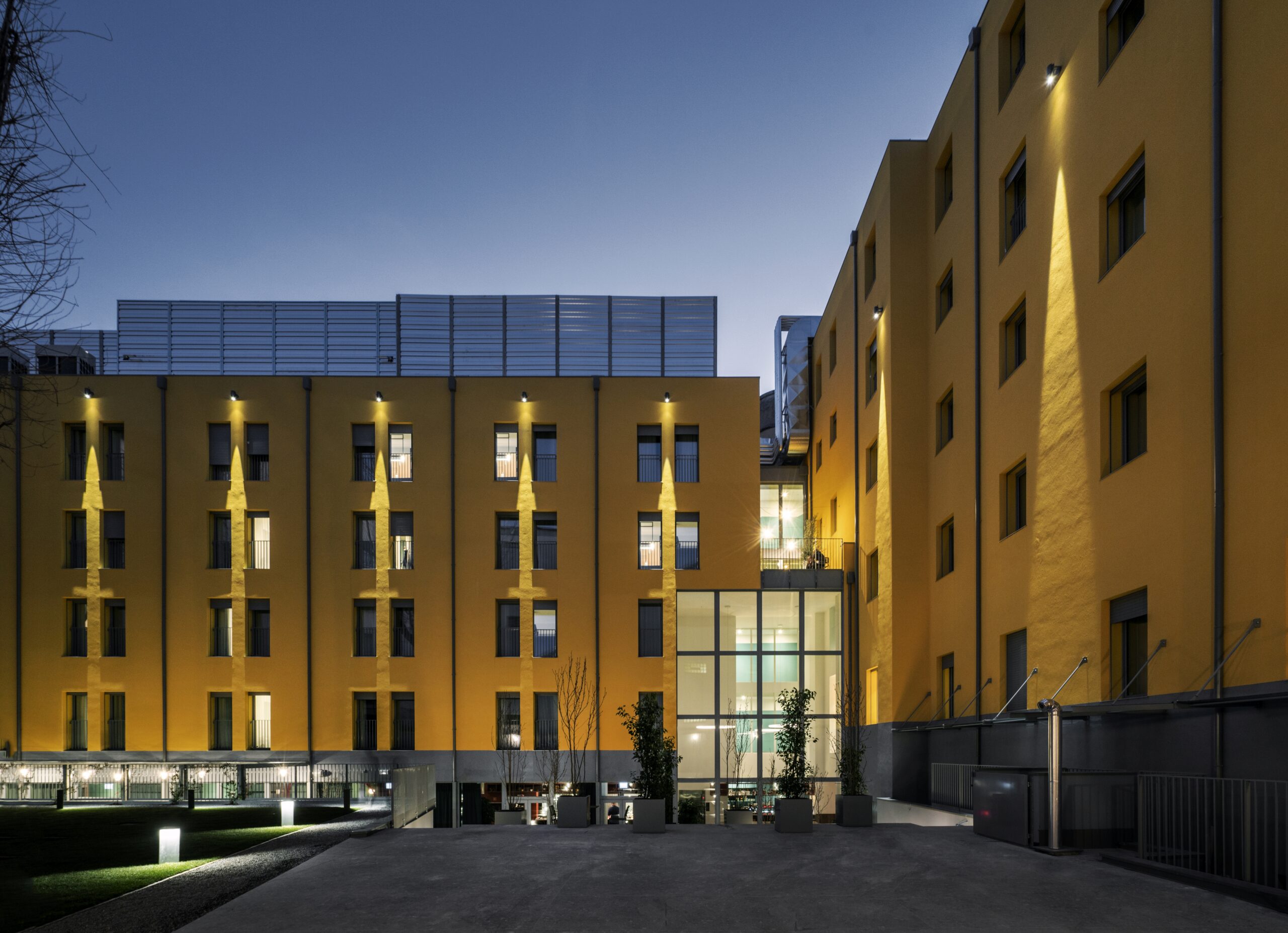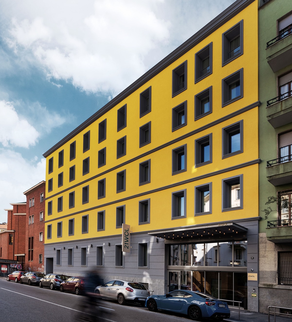 Il progetto di riqualificazione 21 WOL | Way of Living ha interessato un vecchio edificio trasformandolo in una moderna struttura ricettiva e reinventando il concetto di ospitalità basato sulla connessione a servizio dei cittadini. Attraverso questo progetto l’hotel, in origine utilizzato solo come un posto nel quale dormire, si trasforma in un luogo di condivisione e di incontro. 21 WOL | Way of Living: un nuovo concetto di hospitality 21 WOL | Way of Living è un complesso nato dalla riconversione funzionale di un immobile degli anni Trenta. Il progetto porta la firma dell’arch. Roberto Murgia con la collaborazione di Rizoma Architetture per il concept di interior design.L’edificio, ubicato nel cuore di Città Studi a Milano, si presenta come uno spazio ibrido che propone un’offerta diversificata di servizi ed esperienze, divenendo quasi un’estensione fluida dello spazio urbano dove le persone possono dar vita a una community attiva, dinamica e senza barriere.La struttura architettonica è composta da due corpi a L e ospita 120 camere per short e long stay, aree comuni, zone adibite allo studio/lavoro e un ampio giardino centrale con tavoli e sedute per offrire la fruibilità anche degli ambienti aperti.Il cuore dell’edifico è caratterizzato da una hall a tripla altezza che mette in comunicazione i due volumi del complesso e il giardino e assume la funzione di spazio di connessione fruibile e modulabile per le numerose attività della community.Le operazioni di riqualificazione hanno previsto il sopraelevamento di un piano del blocco su strada e la totale ricostruzione del volume interno, a cui è stato aggiunto un ulteriore livello in altezza. L’involucro dell’edificio è stato interessato dalla realizzazione di un sistema di rivestimento a cappotto e dalla sostituzione dei serramenti con modelli ad alte prestazioni. Il contributo di Alpac per la massima efficienza e qualità estetica Per garantire la resa termica e acustica dei nuovi infissi Alpac ha sviluppato una soluzione efficace per la gestione dei fori finestra, soddisfacendo le specifiche esigenze estetiche del progetto. Nello specifico Alpac ha sviluppato e fornito 140 monoblocchi Presystem SPS Serie R custom made. Si tratta di sistemi prefabbricati progettati appositamente per gli interventi di riqualificazione e caratterizzati da una posa dall’esterno semplice e veloce. Una metà delle soluzioni monoblocco è stata predisposta per l’alloggio dell’avvolgibile mediante cassonetto costituito da lastre in legno-cemento, mentre la restante parte è stata fornita senza sistema di oscuramento esterno. Il team tecnico di Alpac ha anche collaborato allo studio dettagliato del giunto tra parametro murario e finestre, permettendo di ottimizzare le performance della facciata e di contribuire in modo sostanziale all’ottenimento della certificazione LEED Gold. Consiglia questo comunicato ai tuoi amici
