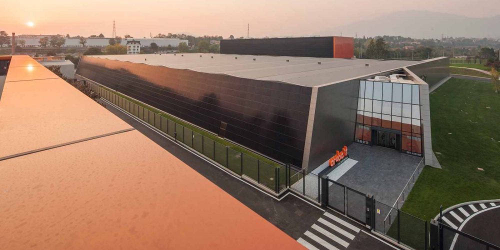 La palazzina uffici è stata riconosciuta primo edificio passivo in Italia con certificazione PHI (Passive House Institute), grazie a un sistema impiantistico innovativo alimentato con energia pulita proveniente dai pannelli fotovoltaici e da pompe geotermiche, che sfruttano il calore immagazzinato nel terreno, collegate alla palizzata energetica posta nel sottosuolo. Particolare attenzione è stata dedicata anche all’aspetto del raffrescamento dell’acqua per il processo produttivo e per l’impianto di climatizzazione, sempre ottimizzando al 100% gli apporti energetici gratuiti.