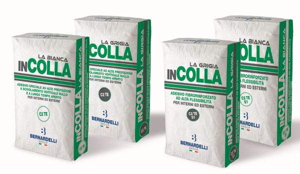 I due nuovi adesivi cementizi ad alte prestazioni firmati Bernardelli Group, InColla di classe C2TE e InColla di classe C2TE S1, specifici per la posa di prodotti ceramici e lapidei sempre più performanti, sono disponibili nella duplice colorazione bianca e grigia, in modo da adattarsi alla tipologia di prodotto da posare.