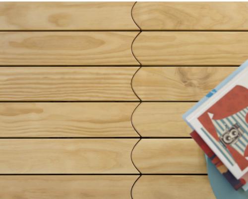 Le forme morbide e i profili stondati, elementi identificativi della collezione nata dalla reinterpretazione della designer spagnola delle classiche geometrie delle superfici lignee, caratterizzano anche la versione per esterni, in un omaggio all’originaria vocazione decorativa dei pavimenti in legno.