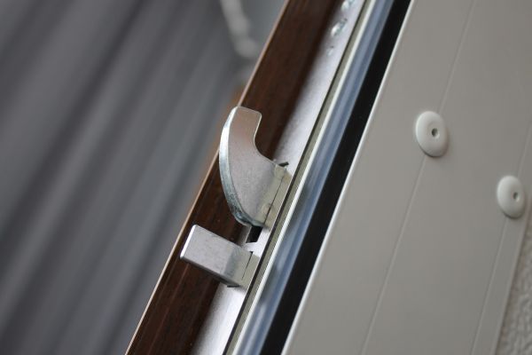 La nuova serratura a quattro punti di chiusura si compone del catenaccio tradizionale al quale si aggiungono tre catenacci rotanti a gancio disposti lungo tutta l’altezza. é sufficiente una leggera azione sulla maniglia della porta pedonale per attivare l’intero sistema di ganci che – con un movimento assolutamente fluido – entrano e si fissano nei pannelli del portone.