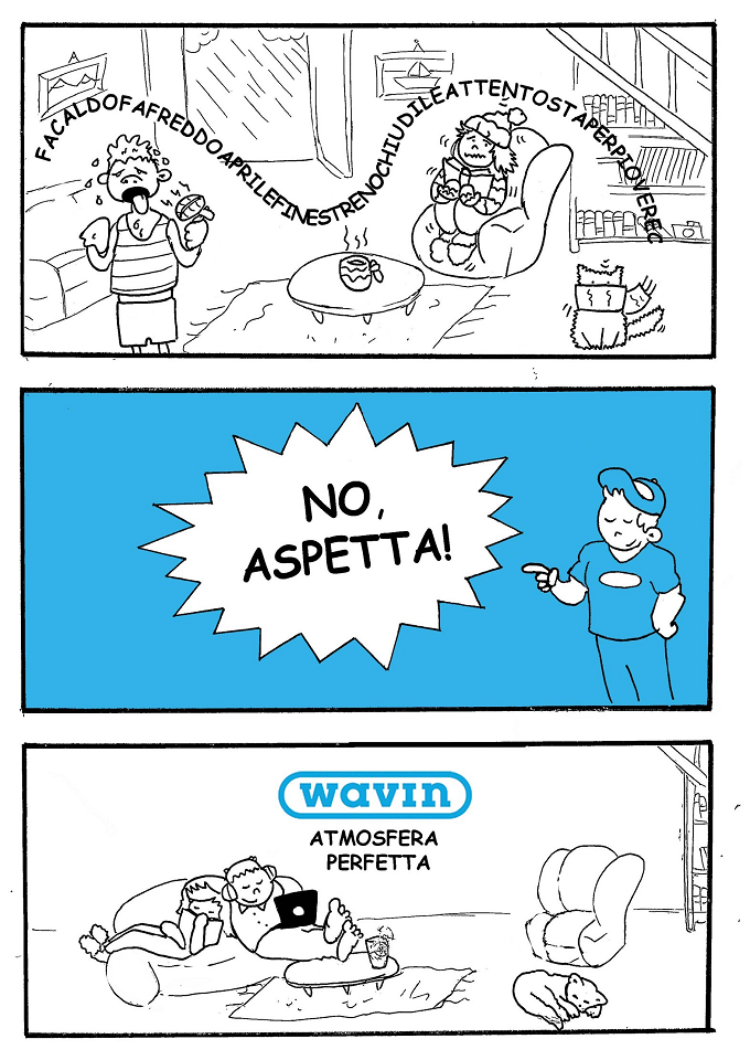 Wavin Italia ha lanciato Indoor Climate Solutions, la nuova campagna di comunicazione per ricercare l’atmosfera perfetta e ottenere un reale comfort abitativo all’interno di ogni singolo ambiente.La nuova campagna Indoor Climate Solutions di Wavin Italia, azienda attiva nello sviluppo di sistemi di tubazioni plastiche e di soluzioni per la climatizzazione nel settore edilizio e nelle infrastrutture, si pone l’obiettivo di rispondere in modo diretto e immediato alle domande che ruotano attorno al mondo della climatizzazione e del comfort. La campagna è costruita utilizzando un mezzo non convenzionale, il fumetto, ed è rivolta a un pubblico molto ampio e variegato, che comprende sia progettisti termoidraulici, che grossisti e installatori, fino a raggiungere i clienti finali. Proprio attraverso il fumetto l’azienda riesce a comunicare in maniera immediata, sfruttando il potere comunicativo di immagini semplici ma di effetto. L’obiettivo della campagna Indoor Climate Solutions di Wavin Italia Cuore della campagna di comunicazione la ricerca dell’atmosfera perfetta all’interno degli ambienti, che si tratti di abitazioni, negozi o spazi di lavoro, ottenuta abbinando comfort abitativo, risparmio energetico e aria salubre. A tale proposito l’azienda propone un sistema unico e innovativo, grazie alla combinazione di soluzioni di ventilazione meccanica controllata, climatizzazione radiante e termoregolazione. “A chiunque è capitato di trovarsi in situazioni in cui determinati fattori ambientali vanno a influenzare il nostro comfort abitativo e la nostra percezione di benessere –sottolinea Stefania Ferlin, Responsabile Marketing e Comunicazione di Wavin Italia– con questa campagna ci proponiamo di comunicare in maniera molto più diretta e immediata, anche grazie alla forza espressiva del fumetto, un tema che ormai riguarda davvero tutti. La ricerca dell’atmosfera perfetta è un obiettivo che Wavin persegue da tempo e la presentazione del nuovo sistema Indoor Climate 3 in 1, che abbina le nostre soluzioni per la climatizzazione, ne è la testimonianza più recente e importante”. Dove trovare la campagna Wavin Indoor Climate Solutions? La campagna Wavin Indoor Climate Solutions sarà diffusa sul web e sui social media, attraverso una serie di contenuti sviluppati ad hoc dall’azienda, ma troverà posto anche sulle principali testate di riferimento per i progettisti, i distributori termoidraulici e gli installatori. Consiglia questo comunicato ai tuoi amici