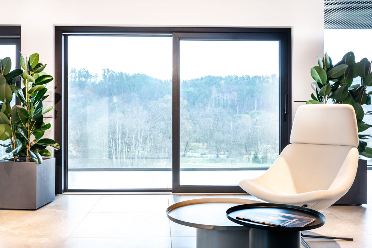 Vista panoramica XXL e massima luce naturale con vetrate che si inseriscono quasi direttamente nel telaio della porta, offrendo ancora più opportunità di collegare visivamente l’esterno dell’edificio con l’interno.