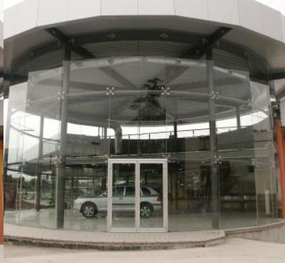 Le specchiature curve sono state realizzate con collaudati sistemi per facciate a montanti e traversi calandrati con elevato isolamento termico Schüco FWS 60+ SI; L’opzione di sistema SI (Super Insulation) non solo soddisfa gli attuali standard di risparmio energetico, come l’EnEV, ma, con valori Uf fino a 0,7 W/m2K, migliora fin da ora alcuni di questi requisiti. In questo modo, si ha l’opzione di realizzare facciate di rivestimento in alluminio adatte allo standard Casa passiva. Il sistema permette di creare facciate verticali e coperture con geometrie e forme di grande effetto, in particolare, con altezze di installazioni e larghezze dei moduli elevate;