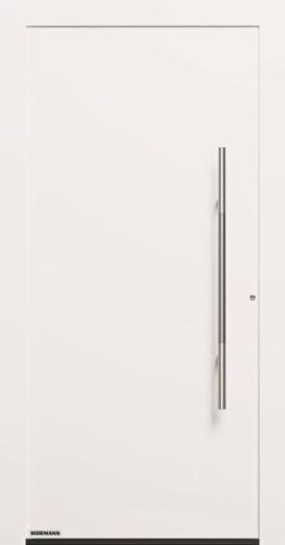 Porta d’ingresso hormann ThermoCarbon (Motivo 860), in bianco e con sottile maniglia in acciaio inox
