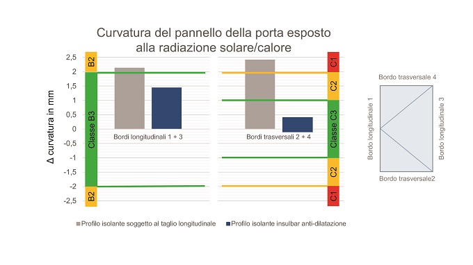 Insulbar, profilo isolante anti-dilatazione messo a punto da Ensinger per le porte in alluminio, si aggiudica la migliore classe climatica B3/C3.Il profilo isolante anti-dilatazione brevettato Insulbar è stato studiato e sviluppato specificamente per il taglio termico delle porte in alluminio da esterno, quali portoncini d’ingresso e porte scorrevoli. Grazie al suo utilizzo viene ridotto l’effetto bi-metallico. I profilati delle porte in alluminio sono, quindi, esenti da fenomeni di dilatazione causati dalla differenza di temperatura tra esterno ed interno, evitando il manifestarsi di difetti o situazioni in cui la porta rischia di bloccarsi. Test condotti sul profilo isolante insulbar Il profilo isolante insulbar è stato recentemente sottoposto a una serie di test effettuati da parte dell’istituto di controllo gbd Lab a Dornbirn, in Austria. I test sono stati eseguiti nel rispetto della norma di prova EN 1121, classificando le soluzioni secondo la EN 12219. A sinistra, una porta con profilo isolante tradizionale: il forte gradiente termico causa un’incurvatura della porta. A destra composito di alluminio con profilo isolante insulbar anti-dilatazione: la zona isolante mobile compensa efficacemente le dilatazioni longitudinali variabili del guscio interno ed esterno e ne impedisce la deformazione. Nello specifico hanno avuto lo scopo di verificare la deformazione in direzione longitudinale e trasversale delle porte d’ingresso con profili anti-bimetallo, sottoponendole a livelli di temperatura sia bassi che alti. Dal confronto tra una porta in alluminio dotata di profilo insulbar anti-dilatazione e una porta con profilo isolante soggetto al taglio longitudinale di un altro produttore è emersa l’efficacia della soluzione messa a punto da Ensinger, con riconoscimento della migliore classe climatica B3/C3. L’efficacia di insulbar deriva dalla presenta di una zona isolante mobile in grado di minimizzare l’effetto della differenza termica e, quindi, della deformazione. L’istituto di controllo gdb Lab ha testato l’incurvatura determinata da condizioni climatiche diverse in due porte d’ingresso a taglio termico. Una porta con profilo isolante soggetto al taglio longitudinale e l’altra dotata del profilo isolante anti-dilatazione di Ensinger. Lo schema mostra come nel clima estivo (con temperatura della porta interna: 25 ± 5 °C, ed esterna: + 80 ± 5 °C) la porta con il profilo anti-dilatazione ottiene la classe migliore B3/C3 e riduce efficacemente l’effetto bi-metallico. “A differenza dei profili resistenti al taglio longitudinale di altri produttori e o soggetti al taglio longitudinale, il profilo in poliammide anti-dilatazione di Ensinger è costituito da due parti che, in caso di dilatazioni termiche variabili dei gusci interno ed esterno della porta, si muovono l’uno rispetto all’altro” dichiara Daniele Saibene, direttore generale per insulbar in Ensinger Italia. “Si crea così una zona isolante mobile con una resistenza alla trazione trasversale maggiore e in grado di ridurre al minimo l’effetto della differenza termica.” Migliore classe climatica per insulbar Il test di verifica ha evidenziato come la deformazione longitudinale della porta in alluminio da 2,18 x 1,23 m dotata di profilo isolante insulbar sia stata decisamente inferiore a 2 mm, mentre la deformazione trasversale è stata registrata al di sotto di 1 mm. In tutte le diverse condizioni climatiche testate, la porta con profilo insulbar ha ottenuto la classe climatica migliore B3/C3, a differenza del prodotto di riferimento che si è aggiudicato solo la classe B2/C1 e non è riuscito a soddisfare i requisiti minimi del produttore di porte. Consiglia questo comunicato ai tuoi amici