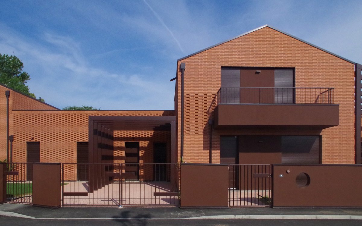 Il progetto si inserisce in un contesto fortemente caratterizzato da preesistenze storiche e ambientali tipiche del territorio Emiliano, caratteristica che ha delineato le modalità di intervento che ha previsto la riqualificazione di alcuni magazzini agricoli dismessi. Sulla base di queste considerazioni il progetto ha previsto l’inserimento di elementi in grado di richiamare le caratteristiche locali, riproponendo forme e materiali riconducibili al territorio Agricolo. Il progetto di riqualificazione Corte Ducati Corte Ducati è un complesso residenziale di 10 unità abitative che si presenta come un modulo abitativo di dimensioni contenute, ripetuto e specchiato, con lo scopo di minimizzare l’impatto del costruito rispetto all’ambiente circostante.Tutto questo è ottenuto riproponendo la forma dei fienili asimmetrici con copertura a due falde, di cui quella maggiore aperta sul fronte principale. Il volume viene ricompattato mediante l’inserimento di pergolati per il ricovero auto. Il modulo in sequenza alternata genera in prospetto un andamento sinuoso delle falde che nel punto più basso offrono scorci visuali sul paesaggio circostante.Esternamente il complesso è arricchito dalla presenza di ampi giardini privati, presenti sia sul fronte che sul retro, a corredo delle abitazioni. Vi sono, inoltre, spazi verdi comuni che ospitano 63 alberi messi a dimora di specie autoctone come querce e frassini, disposti lungo il perimetro della corte agricola storica. La pelle di rivestimento con laterizio Terreal Italia La pelle di rivestimento è stata realizzata utilizzando il mattone rosso, a pasta molle non estrusa della linea Vivo SanMarco di Terreal Italia, materiale della tradizione Bolognese riproposto in chiave contemporanea. I mattoni sono posati definendo una trama variabile, ora chiusa e compatta ora ruvida e sporgente, ora rientrante come un ricamo ora traforata per mostrare ciò che succede all’interno interno. Sono due i colori prevalenti utilizzati nel progetto, a definire la naturale gerarchia dei pieni e dei vuoti: il rosso del mattone, primario, e il marrone testa di moro per tutte le finiture a complemento. Consiglia questo comunicato ai tuoi amici