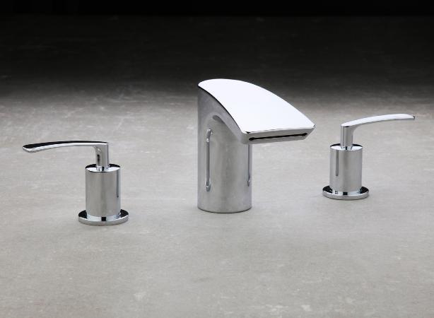 Il miscelatore si distingue per il possente corpo che svetta fino alla leva di comando e per la particolare linea della bocca di erogazione che si dilata assumendo una forma trapezoidale, da cui scaturisce una cascata d'acqua di notevole impatto emozionale.