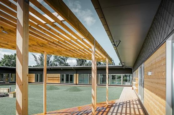 In un intervento di riqualificazione della scuola materna di Sorgarden sono state scelte in facciata le forme geometriche dalle linee uniche delle losanghe Prefa Per il progetto del rifacimento della scuola materna di Sorgarden gli architetti di studio Total Arkitektur hanno scelto un leitmotiv geometrico, quello del rombo. Lo studio, attivo da oltre 70 anni, si è spesso occupato di progettare edifici scolastici e case di riposo con l’obiettivo di favorire la comunicazione e la condivisione tra le persone che vivono lo spazio. La scuola materna di Stoccolma «La forma del rombo è stato il leitmotiv del progetto. Abbiamo voluto dar vita a una struttura che si armonizzasse con il tessuto esterno e che allo stesso tempo fosse concepita per i bambini: divertente, robusta e dalle linee semplici», spiegano Carolin Fleming e Johan Granqvist dello studio Total Arkitektur, illustrando il loro progetto di rifacimento della scuola materna di Sörgården, nella periferia sud di Stoccolma. «L’edificio precedente, abbattuto perché ormai fatiscente, era poco luminoso, con corridoi tortuosi e ambienti angusti» racconta Carolin Fleming. Al posto del corridoio centrale è stata sviluppata una galleria che segue il perimetro del giardino del cortile interno, una condizione favorevole in cui si può cogliere la visione d’insieme del complesso, favorendo così la comunicazione tra bambini e insegnanti. Il progetto della nuova scuola di Total Arkitektur si inserisce armonicamente nel quartiere, una zona caratterizzata da ville e case residenziali degli anni 60 e 70. Gli elementi geometrici in facciata Il design è stato curato nel minimo dettaglio, soprattutto dal punto di vista dell’aspetto cromatico, in quanto i colori variano a seconda dell’esposizione alla luce. Il risultato è un ambiente gioioso e armonioso, perfetto per accogliere i piccoli studenti che ogni giorno lo affollano. I dipinti dei bambini sono i protagonisti dello spazio interno, volutamente realizzato in toni chiari e neutri. «Saranno i disegni e i lavoretti dei bambini a dare colore, perché sono le loro opere che devono essere al centro dell’attenzione. La massiccia presenza del legno trasmette calore: volevamo che i bambini si sentissero a loro agio» sottolinea Granqvist. Le losanghe Prefa in alluminio L’elemento del rombo torna fortemente nel progetto. La facciata è infatti caratterizzata da un motivo di rombi marroni e d’oro. Il comune è stato molto esigente con i progettisti chiedendo che l’edificio fosse rivestito con un materiale robusto in grado di resistere ai giochi dei bambini e agli urti. La scelta è ricaduta sull’alluminio Prefa: per il rivestimento della facciata è stata scelta la losanga 20 x 20 marrone con inserti di losanghe color mayagold per le decorazioni. «Volevamo riportare il nostro motivo a rombi anche sulla facciata: con le Losanghe 20 di PREFA è stato molto semplice. Dopotutto si tratta di un edificio pensato per i bambini. Il disegno in oro arricchisce l’estetica dell’insieme, richiamando una decorazione con medaglie o gioielli, per la gioia dei piccoli. In più, alternando materiali e colori, abbiamo potuto aggiungere una dimensione tattile», racconta Carolin Fleming. L’alluminio Prefa è facile da lavorare, resistente e poliedrico. Michael Karlsson, titolare dell’impresa MK Byggnadsplåtslageri di Västerå commenta così il progetto: «Il bello dell’alluminio PREFA è che non solo è leggero, ma è anche facile da lavorare e da plasmare. Così siamo riusciti a riportare il disegno in maniera fedele e precisa. L’edificio non è soltanto “bello da vedere”, ma anche “decisamente robusto”», sottolinea il carpentiere. «La scuola, quindi, è pronta a far fronte non solo alle intemperie, ma anche alla prova dell’irruenza e impetuosità tipica del gioco infantile». Consiglia questo comunicato ai tuoi amici