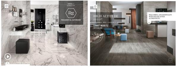 Ogni presentazione include veri progetti d’arredo, è caratterizzata da un’elevata ricchezza di contenuti esclusivi e permette di scoprire vantaggi e dettagli tecnici suddivisi per pavimenti e rivestimenti. Le numerose immagini d’impatto in scala reale che completano ogni progetto consentono di osservare in qualsiasi momento i dettagli e le caratteristiche estetiche delle materie di riferimento.