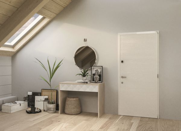 Sobrie e minimaliste, le soluzioni blindate Essential di Scrigno sono prive di stipiti e cornici coprifilo, permettendo così di mimetizzarsi perfettamente con la parete.