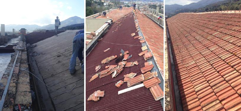 La vecchia copertura, risalente agli anni ’70, era costituita infatti da un semplice tavolato di legno con manto di tegole marsigliesi, stratigrafia che nel tempo è divenuta oggetto di numerose infiltrazioni d’acqua.