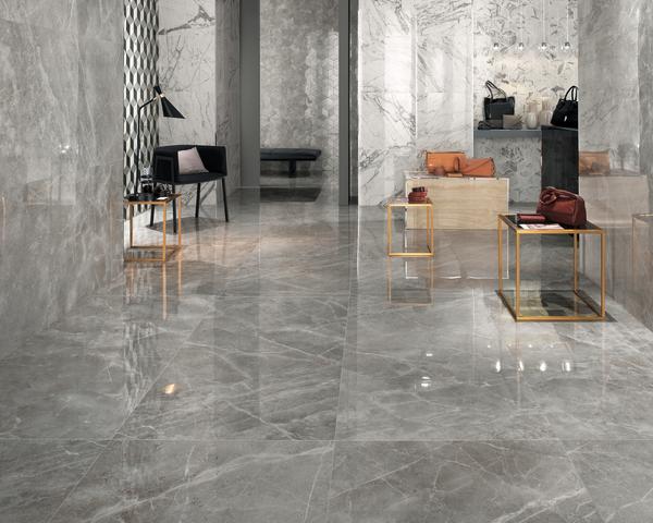 Marvel PRO include una lucida finitura lappata, caratterizzata da una superficie straordinariamente brillante e specchiante, che riproduce con fedeltà la luminosità dei marmi levigati e le lievi irregolarità della materia di ispirazione, garantendo eccezionali proprietà tecniche di resistenza all’usura e di facilità di manutenzione.