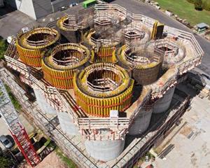 Utilizzando il sistema di casseforme a travi componibili per pareti PERI VARIO su mensole di ripresa SKS e piattaforme di appoggio PERI, gli adattamenti geometrici dovuti alle variazioni di tipologia delle strutture hanno potuto essere effettuati efficientemente.