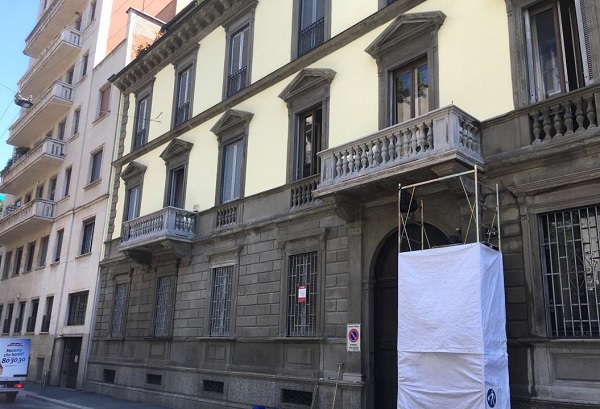 Proind è intervenuta sull'edificio storico milanese mediante consolidazione delle porzioni lapidee in pietra di Sarnico, costituenti le parti di fregi e contorni delle finestre e interessate da evidenti fenomeni di sfoliazione dei materiali, e trattamento delle murature con idoneo idrorepellente.