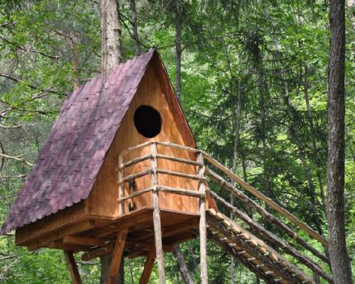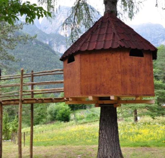 I titolari del villaggio hanno progettato e seguito la realizzazione delle casette in prima persona, dalla ricerca delle migliori tecniche di realizzazione delle casette in legno, alle soluzioni sostegno per non danneggiare i tronchi degli alberi. Tutte le casette sono infatti ammorsate con particolari tecniche di fissaggio o sostenute con apposite strutture in legno senza gravare sulle piante.