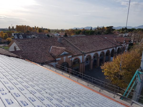 Il sistema ISOTEC XL Plus di Brianza Plastica scelto in un intervento di restauro del centro parrocchiale di Mandria Il complesso della Parrocchia della Natività della Beata Vergine Maria alla Mandria in provincia di Padova, comprende, oltre alla Chiesa, anche diversi spazi, ad essa limitrofi, a disposizione della comunità, che recentemente sono stati protagonisti di un intervento di riqualificazione. Fanno parte del complesso, che risale a fine Ottocento e originariamente era utilizzato per uso agricolo, due corpi di fabbrica adiacenti, il più grande dei quali ha anche un bel loggiato, che delimita il cortile alberato. In particolare si è reso necessario un intervento sul tetto dell’edificio più vicino alla Chiesa che versava in stato di grave ammaloramento ed era del tutto privo di isolamento. A una prima analisi strutturale degli antichi solai lignei dalla conformazione a capriate, è seguita la sostituzione di alcune travi e la rimozione e bonifica dello strato di copertura esistente. I progettisti nella scelta della nuova stratigrafia hanno posto molta attenzione alla realizzazione di un efficace pacchetto coibente, portante e impermeabilizzante di limitato spessore, in modo da assicurare il minor impatto visivo possibile, nel rispetto della struttura architettonica originaria. Proprio per questo si sono affidati alla qualità della soluzione Isotec di Brianza Plastica. I coppi esistenti sono stati rimossi e sono stati recuperati quelli in buono stato nello strato superiore mentre per i coppi di canale sono stati usati elementi nuovi. Sistema termoisolante ventilato ISOTEC di Brianza Plastica Il Sistema ISOTEC XL Plus di Brianza Plastica, scelto in questo caso nello spessore 100 mm, si caratterizza per le ottime proprietà coibenti, il poliuretano espanso rigido di cui è costituito il pannello vanta infatti un valore di conduttività termica dichiarata di 0,022 W/mK. L’installazione del Sistema ISOTEC XL Plus ha permesso di realizzare un isolamento efficiente, in uno spessore molto contenuto e rispondente alle prescrizioni normative. La scelta del pannello ISOTEC XL Plus inoltre ha garantito un’ulteriore sicurezza sulle performance di seconda impermeabilizzazione, assicurate dal rivestimento in alluminio goffrato del sistema. Infatti la guarnizione in PVC, preapplicata sotto al correntino metallico migliora la resistenza alle eventuali infiltrazioni accidentali causate da rotture del manto di copertura. Il profilo XL del correntino in acciaio, integrato nel pannello, presenta un’esclusiva asolatura in grado di assicurare una ventilazione di 200 cm2/m di gronda, oltre a costituire un pratico e funzionale elemento di appoggio per i coppi. Il colmo ventilato realizzato sulla sommità delle falde ottimizza gli effetti della ventilazione sottotegola. Fra l’isolante e il rivestimento della copertura si attiva un flusso d’aria che d’estate migliore le prestazioni termiche della copertura e in inverno facilita lo smaltimento dell’umidità e la più rapida asciugatura dei coppi, prolungandone la durata nel tempo. Consiglia questo comunicato ai tuoi amici
