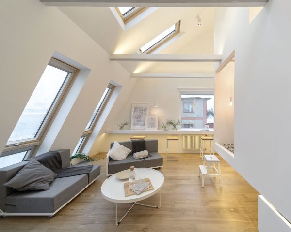 Uno spazio unico irradiato dalla luce: a Mosca il progetto di ristrutturazione di una mansarda che vede le finestre Fakro come protagoniste. Il sottotetto di un’abitazione presenta solitamente ambienti estesi e non interrotti dalla presenza di elementi portanti. Questo spazio dà modo ai progettisti di reinventare soluzioni abitative uniche e di grande fascino. Tra le tendenze più ricercate c’è quella di trasformare il sottotetto in un open space, un ambiente aperto e arioso privo delle partizioni murarie che determinano canonicamente gli ambienti di una casa. Le finestre Fakro sono l’elemento essenziale per questo progetto di ristrutturazione Rientra in questo concept architettonico il progetto di ristrutturazione di una mansarda a Mosca opera dello studio Ruetemple. Lo spazio di 48 m2 è stato trasformato in un luminoso open space: “Abbiamo realizzato uno spazio multifunzionale – affermano i progettisti dello studio d’architettura– nel quale i proprietari possono trascorrere il proprio tempo sia in perfetta solitudine, sia in compagnia di molte persone. Questo ambiente libero da qualsiasi oggetto non necessario è infatti l’ideale per lo svago e il riposo, ma anche per accogliere amici e ospiti.” Per il progetto lo studio Ruetemple ha scelto le finestre da tetto Fakro FDY-V Duet proSky e il modello FTP-V Un ambiente intimo e confortevole in cui troviamo sospeso al centro un grande cubo bianco in cui cresce un piccolo arbusto, come un mantra per la vita che cambia e si rinnova. Al di sotto di questo cubo si vanno a inserire arredi e contenitori su ruote da usare secondo necessità. La tecnologia Fakro al servizio del design progettuale Per realizzare un lavoro di ristrutturazione efficiente occorre selezionare i migliori partner sul mercato. La scelta dei progettisti è ricaduta sulle finestra da tetto Fakro nel modello FDY-V Duet proSky: questa soluzione presenta un doppio battente di cui quello inferiore è fisso ed è dotato di un vetro di sicurezza L3 con pellicola autopulente, mentre quello superiore presenta un asse di rotazione dell’anta decentrato, posto al di sopra della mezzeria del telaio. Lo studio di architettura ha scelto per la mansarda anche le finestre da tetto Fakro modello FTP-V con serramento a bilico, poste sulle falde ad altezza elevata. Questa tipologia di finestra presenta il sistema di ventilazione V40 studiato per garantire il ricambio di aria e ambienti più salubri. Le finestre da tetto scelte sono dotate di sistema topSafe: una funzionalità utile a rafforzare la costruzione del serramento per una maggiore resistenza contro l’effrazione. Consiglia questo comunicato ai tuoi amici