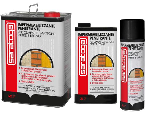 Z7 IMPERMEABILIZZANTE PENETRANTE, come tutti i prodotti della Linea Saratoga per il trattamento di manufatti edili, è distribuita da SARATOGA INT. SFORZA S.p.A. Milano ed è in vendita nei migliori negozi di articoli tecnici, ferramenta, colorifici e nei reparti tecnici specializzati, professionali e brico-professionali.