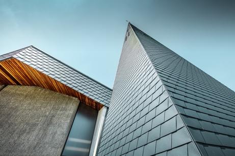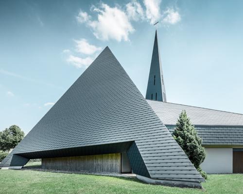 Rivestimento della Chiesa Mater Dolorosa di Langenau con le Scandole PREFA, geometrie ascensionali, protezione e leggerezza. La ristrutturazione dell’antica chiesa Mater Dolorosa a Langenau, costruita nel 1967, ha rappresentato una serie di sfide complesse e imponenti, a partire dal vecchio rivestimento del tetto in scandole in fibrocemento inquinanti, ai danneggiamenti causati dalle tempeste, da atti vandalici e non ultimo da un tremendo parassita del legno che ha colpito la struttura lignea del campanile. L’aspetto esteriore del progetto architettonico è stato mantenuto fedele all’originale ricorrendo all’impiego delle scandole PREFA in alluminio, poste in opera mediante tecniche di installazione all’avanguardia. Restauro dei luoghi di culto: una sfida che va oltre l’architettura La chiesa di Langenau, nei pressi di Ulm in Germania, è stato un caso emblematico di ristrutturazione a 360 gradi. L’importante opera di rinnovamento che riguarda non solo la parte strutturale, ma anche gli interni e i rivestimenti esterni, ha risposto all’esigenza di rendere moderno, funzionale e attuale questo luogo di culto e di ritrovo per la comunità parrocchiale, adattando nel contempo anche la struttura edilizia al moderno rito religioso. La sfida è stata accettata più che volentieri dal progettista Elmar Weber, insieme al suo team, specializzato da oltre 25 anni nel settore degli edifici religiosi. Il restauro dei luoghi di culto è un compito estremamente delicato, che richiede empatia, particolari competenze specialistiche sia per quanto riguarda i contenuti che l’aspetto architettonico, nonché la volontà di assecondare i processi creativi in maniera democratica e paziente. Inoltre, è necessario conoscere la storia contemporanea, i materiali, il rito religioso, l’acustica del suono delle campane, e molto altro ancora. “Non si tratta solo di modernizzare, conservare e ristrutturare, ma anche di portare negli antichi luoghi di culto una nuova vita parrocchiale e sociale, in maniera assolutamente sostenibile“, afferma Weber, che ha realizzato a Langenau il suo primo progetto PREFA. Il progetto ha avuto successo perché ha coinvolto direttamente committenza, progettisti, restauratori, artigiani e l’intera comunità parrocchiale, tenendo in considerazione tutte le richieste e le opportunità esistenti. Scandole Prefa sulla copertura Geometrie variabili e angolazioni particolari: la sfida architettonica Il compito di Weber è stato quello di dare all’edificio religioso, risalente a 50 anni prima, un aspetto nuovo e suggestivo, rendendolo attraente anche per le giovani generazioni. Il fatto che il progetto architettonico del 1967 riveli un design moderno ancora oggi ha certamente il suo fascino, ma comporta anche una serie di sfide. La costruzione asimmetrica non ha infatti alcun angolo dritto, né nella struttura orizzontale né in quella verticale. Inoltre il tetto della chiesa rivestito in tegole di fibrocemento ha costituito per anni un grave problema, poiché afflitto da una manutenzione gravosa e tecnicamente difficile. L’esigenza era dunque quella di creare un tetto durevole e funzionale, in grado di resistere ai capricci del tempo in maniera sicura, senza riportare danni estetici. Per questo è stata immediatamente accolta con estremo favore dall’ufficio vescovile e dal consiglio parrocchiale la decisione del progettista di realizzare sui 2000 m2 della copertura un rivestimento completamente nuovo con scandole color antracite in alluminio PREFA. Oltre al vantaggio di mantenere pressoché invariata l’estetica della chiesa, è stato determinante, ai fini di questa scelta, anche il fatto che l’alluminio non solo è un materiale duraturo ed ecologico, ma è anche resistente agli agenti atmosferici, quasi esente da manutenzione, in grado di resistere agli atti vandalici e poco costoso. Un’installazione a prova di intemperie, con le scandole Prefa Luoghi di culto e scandole PREFA: una combinazione perfetta La lattoneria Engel GmbH, di Fuchstal-Leeder, ha curato con maestria l’installazione delle scandole PREFA, scelte nella colorazione Antracite P.10, le quali sono state smussate sui quattro lati e fissate a prova di tempesta. Uno dei vantaggi derivanti dalle dimensioni ridotte della scandola è che la trama della superficie e l’intera struttura risaltano anche in caso di spazi limitati. “A partire da una pendenza di 25°, verticale o sporgente, la scandola PREFA è sempre un’ottima scelta“, conferma Thomas Engel, titolare della Engel GmbH. Le scandole sono state fissate al rivestimento in legno con travi lamellari mediante l’utilizzo di 10 graffette PREFA per metro quadrato. Il risultato è un’installazione a prova di intemperie. “La sfida tecnica consiste anche nel ricongiungere perfettamente, dal punto vista visivo, le varie superfici con inclinazioni diverse”. In questo modo PREFA ha permesso la realizzazione del rivestimento con scandole prodotte su misura e installate in maniera speculare, contribuendo all’aspetto simmetrico del tetto, la cui superficie è caratterizzata da inclinazioni articolate e diverse tra loro. Il recupero del campanile: funzionalità complesse in un unico elemento architettonico Raccontando l’esperienza affrontata a Langenau, Weber illustra quali siano i problemi con cui devono confrontarsi anche gli architetti più famosi ed esperti quando hanno a che fare con i luoghi di culto. “Durante la ristrutturazione del campanile della chiesa abbiamo avuto una brutta sorpresa. I quattro piani più bassi della torre della chiesa sono realizzati in calcestruzzo ma nella cella campanaria, è presente una struttura in legno. In questo punto ha nidificato indisturbato per anni il capricorno delle case, un parassita del legno, danneggiando la guglia. È stato perciò necessario sostituire gran parte della struttura. Lo stesso vale per le persiane, che sono responsabili per il suono delle campane, e che sono state dannegg