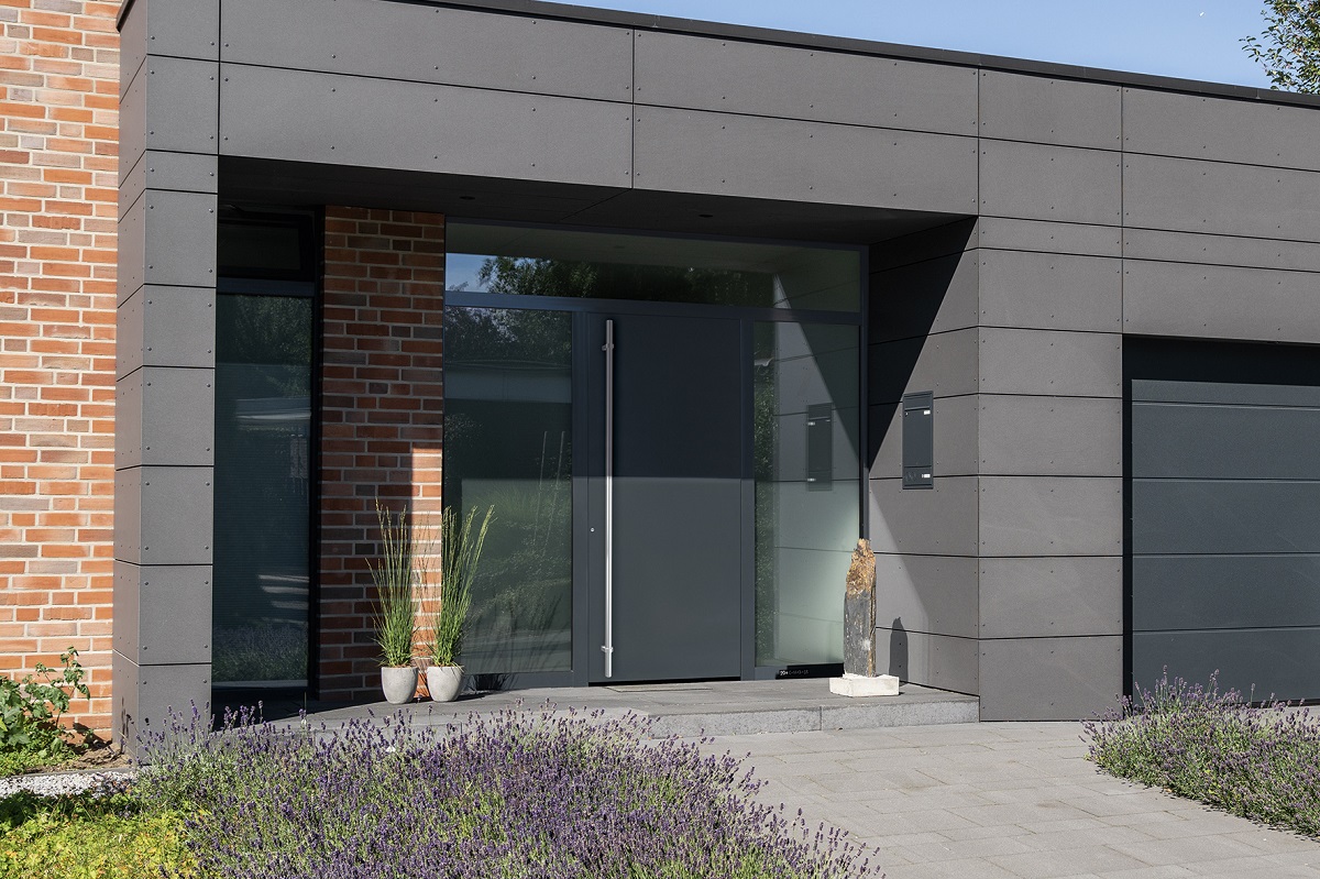 In particolare i visitatori potranno toccare con mano la porta d’ingresso ThermoPlan Hybrid, novità presentata in fiera, un prodotto top di gamma che unisce design di impatto a ottime prestazioni tecniche e di isolamento termico (valore UD 0,87 W/ (m²·K)).Porta d’ingresso ThermoPlan Hybrid di HormannLa porta va a completare la gamma di fascia alta di cui fanno già parte le ThermoCarbon e ThermoSafe, entrambe dagli ottimi valori di isolamento termico che le rendono particolarmente adatte per le case passive e a bilancio energetico positivo, che producono più energia di quanta ne utilizzino.