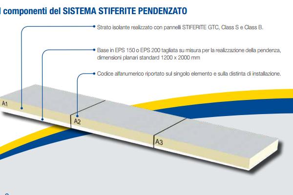 Per permettere un corretto deflusso delle acque meteoriche, le coperture piane o sub orizzontali (pendenza ≤ 5%) devono garantire valori di pendenza, costanti per l’intera superficie, non inferiori a 1 – 1,5%. Se questo importante parametro non viene rispettato si possono formare pericolosi ristagni di acqua che compromettono la funzionalità dell’intero pacchetto di coibentazione e impermeabilizzazione. …alla soluzione. Il SISTEMA STIFERITE PENDENZATO permette di progettare e realizzare elementi modulari preassemblati che costituiscono sia un perfetto strato di pendenza, correttamente orientato verso gli scarichi predisposti, sia uno strato termoisolante dimensionato in funzione del livello di prestazione energetica richiesta. Tutti gli elementi che compongono il SISTEMA, composto da base in polistirene espanso e pannello isolante in poliuretano all’estradosso, vengono assemblati all’interno degli stabilimenti STIFERITE utilizzando le tecnologie più opportune per assicurare una duratura ed efficace adesione tra i diversi materiali. Tre sono le tipologie Pendenzato Class S Con pannello STIFERITE Class S, rivestito su entrambe le facce con velo vetro saturato. Idoneo per l’applicazione di membrane bituminose e sintetiche mediante sistemi di fissaggio a freddo. Pendenzato Class B Con pannello STIFERITE Class B, rivestito sulla faccia superiore con velo di vetro bitumato accoppiato a PP e su quella inferiore con fibra minerale saturata. Idoneo per l’applicazione di membrane bituminose mediante sfiammatura. Pendenzato Class GTC Con pannello STIFERITE GTC, rivestito su entrambe le facce con Politwin®. Idoneo per l’applicazione di membrane bituminose e sintetiche mediante sistemi di fissaggio a freddo. Scarica la scheda tecnica del SISTEMA STIFERITE PENDENZATO Consiglia questo comunicato ai tuoi amici