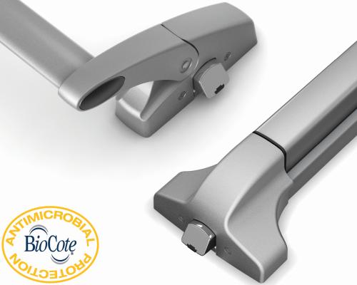 Per questo motivo Savio ha adottato su tutti i maniglioni antipanico delle linee Juvarra e Brunelleschi una particolare vernice antimicrobica agli ioni d’argento. L’intera superficie del maniglione è così ricoperta e protetta in modo duraturo creando una patina sulla quale i microbi non possono sopravvivere. Si tratta di una tecnologia firmata BioCote, azienda inglese nata a Coventry nel 1994 e divenuta in pochi anni il leader mondiale nell’industria delle soluzioni antimicrobiche per ogni tipo di superficie.