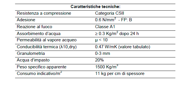 • Acqua d’impasto (variabile in funzione del tipo di inerte utilizzato): ca. 8%