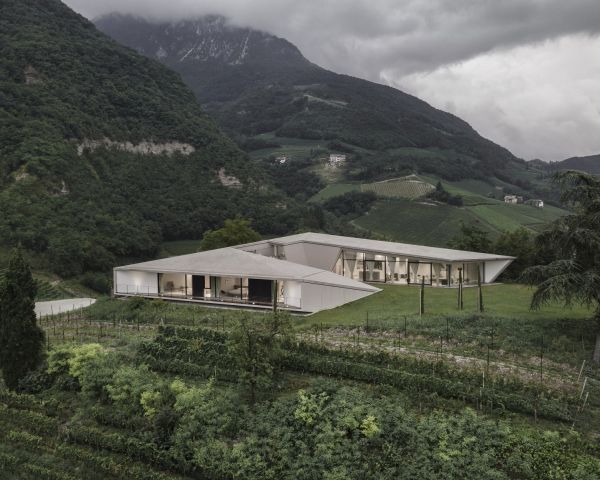 Inserita nel bellissimo paesaggio alpino dell’Alto Adige, a Termeno, patria del vino Gewürztraminer, la villa Kastelaz Hof ha un’architettura fluida e armoniosa. I tetti inclinati, la matericità dei muri, la sua posizione in cima alla collina,, le ampie finestre e l’uso di materiali naturali e locali creano una geometria senza soluzione di continuità con il paesaggio circostante. a cura di Tommaso Tautonico Progettata dallo studio di architettura Peter Pichler Architecture, Kastelaz Hof è una villa su vigneto ispirata al paesaggio nel nord Italia. Nel 2018 lo studio ha vinto un concorso su invito per sostituire una vecchia struttura esistente in cima al vigneto “Kastelaz” con una nuova villa, di proprietà di una nota famiglia di viticoltori della zona. La nuova villa si trova in Alto Adige, nel meraviglioso paesaggio alpino di Termeno, rinomato per essere la patria del vino Gewürztraminer. La villa immersa nel paesaggio La soluzione proposta dagli architetti è riuscita a rispettare le richieste del cliente che voleva la massima integrazione con il paesaggio circostante, nel rispetto delle caratteristiche del sito, immerso tra valli di montagna, il vigneto, una foresta e il vicino Lago di Caldaro, offrendo una meravigliosa vista a 360 gradi. Una geometria nastriforme e armoniosa La geometria della villa, con struttura nastriforme e suddivisa in tre ali, si evolve dalle condizioni del sito, creando una transizione fluida e armoniosa con il paesaggio, appena percettibile dal vicino paese. Il progetto ha dato vita ad una struttura che emerge dalla collina e che grazie al tetto leggermente inclinato disegna un tutt’uno con il vigneto, senza soluzione di continuità. La vista aerea della villa mostra una struttura a “C” dalla forma squadrata, con una corte interna che offre protezione dal forte vento proveniente dal Lago di Garda. La matericità esterna della villa replica i muri di contenimento esistenti dei vigneti circostanti, realizzati in pietra calcarea, rispecchiandone consistenza e colore. La struttura è suddivisa in tre “ali” che esaltano la luce e rafforzano le connessioni tra interno ed esterno. Un cortile interno collega tutti gli spazi, fondendosi perfettamente con la natura. Le ampie facciate in vetro sono progettate per inquadrare l’ambiente circostante e far entrare il paesaggio negli spazi interni pur mantenendone la privacy. Gli interni sono caratterizzati da materiali locali, con un’atmosfera calda ma allo stesso tempo semplice e minimale. Materiali come il cemento e il legno, vengono utilizzati per creare continuità tra la casa e l’esterno. img by www.peterpichler.eu Consiglia questa notizia ai tuoi amici Commenta questa notizia