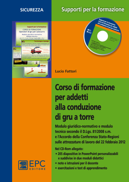 ADDETTI ALLA CONDUZIONE DI GRU A TORRE Posted on 20 Novembre 2014 (20 Novembre 2014) by Raffaella Descrizione Il D.Lgs. 81/08 attribuisce fondamentale importanza alla formazione nella gestione dell’igiene e della sicurezza sul lavoro. L’uso di attrezzature da lavoro che richiedano conoscenze o responsabilità particolari rende necessaria una specifica abilitazione. Il legislatore ha disciplinato in tal senso nei confronti dei soggetti che a vario titolo sono coinvolti nella gestione della Salute e Sicurezza sul Lavoro. L’Accordo della Conferenza Stato Regioni del 22/02/12 ha dettagliato le attrezzature da lavoro che richiedono specifiche abilitazioni, i percorsi formativi per gli operatori, i soggetti formatori, la durata, gli indirizzi e i requisiti minimi di tale formazione. Questo prodotto contiene la traccia di un corso di formazione per i lavoratori addetti alla conduzione di gru a torre, nella parte relativa al modulo giuridico-normativo e modulo tecnico, strutturato secondo le indicazioni dell’Allegato V del citato Accordo Stato Regioni. Il percorso proposto contiene quindi i 2 moduli, il primo della durata di 1 ora e il secondo di 7 ore, dedicati agli aspetti giuridici e normativi, all’illustrazione del funzionamento e dell’uso in sicurezza della gru a torre, dei vari tipi di allestimento e accessori, per un complesso di oltre 200 slide commentate. Si tratta di un ulteriore testo che va ad arricchire una collana che comprende l’esame dei principali aspetti di salute e sicurezza sul lavoro trattati con il coinvolgimento di professionisti esperti nelle specifiche materie oggetto di approfondimento. La collana risponde quindi all’esigenza di effettuare una raccolta sistematica delle informazioni necessarie per gli incontri di formazione e informazione. L’utente potrà quindi adattare ogni prodotto alle specifiche esigenze dell’azienda in esame. Al testo è allegato un CD nel quale sono fornite le diapositive in formato PowerPoint oltre che le esercitazioni e i questionari di valutazione. Autore Lucio Fattori: Ingegnere civile, svolge l’attività professionale di R.S.P.P. e di consulente per le aziende. Si occupa in particolare di formazione in materia di sicurezza per lavoratori e datori di lavoro ed ha collaborato all’organizzazione di numerosi corsi ed eventi formativi sull’argomento. Destinatari Consulenti, datori di lavoro, responsabili servizi di prevenzione e protezione, rappresentanti per la sicurezza, enti di formazione. Argomenti promozionali Una collana con cd rom che per la completezza delle informazioni e per il taglio pratico ha incontrato il gradimento dei professionisti della sicurezza. Il volume è aggiornato con l’Accordo della Conferenza Stato-Regioni del 22 febbraio 2012 Scarica alcune pagine del volume