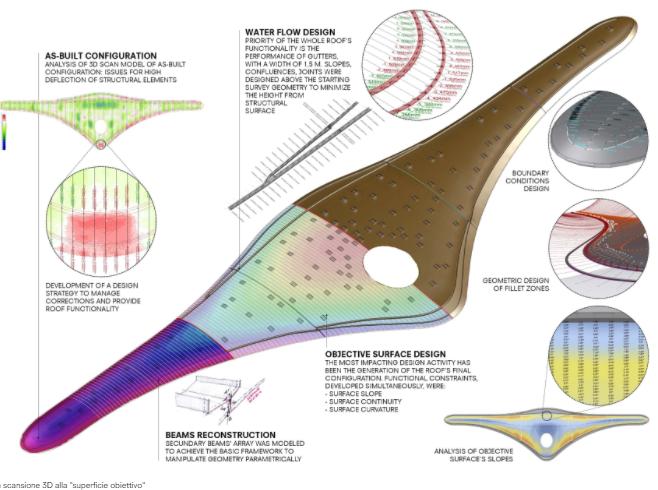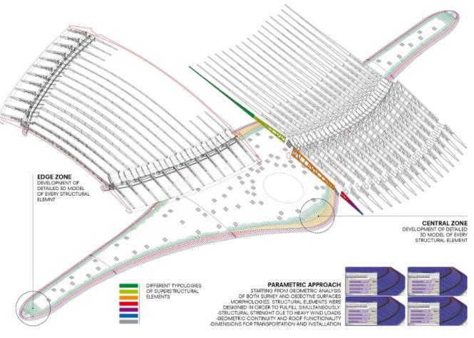 Politecnica, fra le maggiori società di progettazione integrata a capitale italiano – architettura, ingegneria e urbanistica – ha realizzato per conto di ISCOM S.p.A., produttrice del sistema di copertura RIVERCLACK®, la progettazione strutturale delle sovrastrutture che costituiscono l’involucro di copertura del nuovo aeroporto internazionale Tocumen di Panama City progettato da Foster+Partners. Il progetto – denominato “greatness in the sky” – ha previsto in particolare la progettazione costruttiva, da parte di Politecnica, delle strutture di supporto della copertura per il nuovo aeroporto Tocumen di Panama, una struttura dal design moderno ed iconico, simbolo della crescita e dello sviluppo del territorio. L’involucro dell’edificio rappresenta un nuovo landmark per la città di Panama City ed è l’elemento caratterizzante che dimostra l’integrazione tra struttura e strategie ambientali. Il nuovo Aeroporto Internazionale di Panama, progettato da Foster+Partners, è costituito da una superficie di copertura con sviluppo massimo longitudinale di 670 m e trasversale di 180 m. La doppia curvatura è continuamente variabile sia in valore che in segno, ma con gradiente molto contenuto. Questo fatto richiede particolare rigore progettuale nella definizione e nel controllo della forma dell’involucro. L’inserimento di due grandi canali per la raccolta delle acque e l’andamento delle relative pendenze costituiscono un’altra complessità riguardante la geometria di raccordo. D’altro canto l’andamento delle strutture metalliche principali delimita una superficie diversa da quella definita “obiettivo”, oltre ad essere affetta da tolleranze di montaggio che, date le grandi dimensioni della struttura, risultano sensibili allo studio delle variazioni di curvatura. Nuovo Aeroporto Internazionale di Panama Il progetto della copertura del nuovo aeroporto di Panama ha una forte impronta italiana. Tutto il materiale con cui verrà realizzata la copertura dell’aeroporto – composto da migliaia di pezzi di dimensioni variabili – è progettato e costruito in Italia da aziende e officine italiane. La sfida tecnica è nell’ideazione di un sistema di elementi a supporto del rivestimento di copertura, per una superficie di quasi 700 metri di sviluppo longitudinale e 180 trasversale, con doppia curvatura continuamente variabile e gradiente molto contenuto. Questo richiede particolare rigore progettuale nella definizione e nel controllo della forma dell’involucro. Una volta poi elaborata la superfice, la progettazione si è rivolta all’ingegnerizzazione degli elementi strutturali che costituiscono il sostegno del manto di copertura e al tempo stesso soluzione della forma geometrica, garantendo la necessaria resistenza agli effetti del vento e dell’azione sismica richiesta dalle norme americane. Elaborata la superficie “obiettivo”, la progettazione svolta da Politecnica si è poi rivolta all’ideazione ed all’ingegnerizzazione di un sistema di elementi strutturali che, nella loro “serialità continuamente variabile”, sono sostegno dell’involucro e allo stesso tempo soluzione del problema geometrico – formale – costruttivo. La copertura deve infatti garantire la necessaria resistenza agli effetti del vento e dell’azione sismica secondo i codici americani oltre che soddisfare le specifiche prestazionali richieste da Foster+Partners. Tutta l’attività di progettazione ha richiesto inoltre una specifica gestione digitale delle informazioni. Partendo dalla superficie “obiettivo” è infatti possibile controllare ogni singolo componente partendo dalla propria georeferenziazione di montaggio. Si ottiene così una sequenza completa che dai processi di produzione, suddivisi in diversi stabilimenti, arriva a definire il singolo imballo per il trasporto navale. Luogo Panama City Paese Panama Cliente ISCOM S.p.A. Team Politecnica Ingegneria e Architettura Incarico Progettazione costruttiva, assistenza tecnica, elaborazione e definizione geometrica dell’involucro definitivo, della struttura di sostegno e dell’involucro di copertura Progetto 2016 – 2017 Area di progetto 85.000 m2 Superficie d’intervento 50.000 m2 Consiglia questa notizia ai tuoi amici Commenta questa notizia