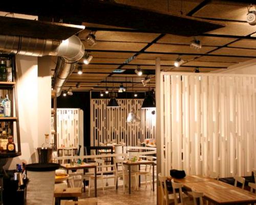 Diventa fondamentale quindi intervenire per risolvere definitivamente la problematica acustica. Questi elementi in lana di legno pendenti dal soffitto offrono una soluzione valida e creativa.